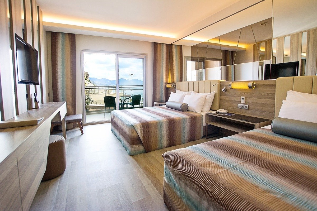 standardowy: 2-os. (możliwość 1 dostawki), ok. 30 m², indywidualnie sterowana klimatyzacja, łazienka (prysznic, wc; suszarka), telewizja satelitarna, telefon, sejf, minibar; bezpłatne łóżeczko dla dziecka do 2 lat na zamówienie przed przyjazdem; balkon (stolik, krzesełka); widok na morze.