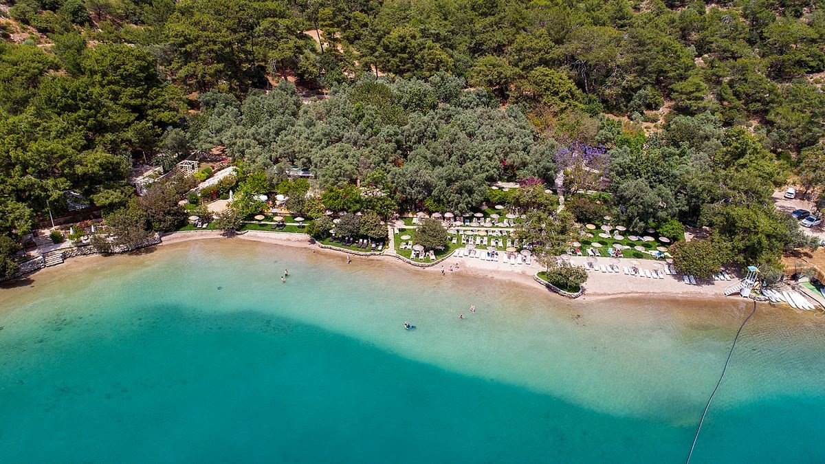 hotelowa, piaszczysta, w pobliżu Błękitnej Laguny, łagodne zejście do morza, ok. 1,5 km od hotelu, bezpłatny bus hotelowy, bezpłatne parasole, leżaki i materace, ręczniki za kaucją; publiczna, piaszczysto-żwirkowa, łagodne zejście do morza, ok. 250 m od hotelu, parasole i leżaki płatne.