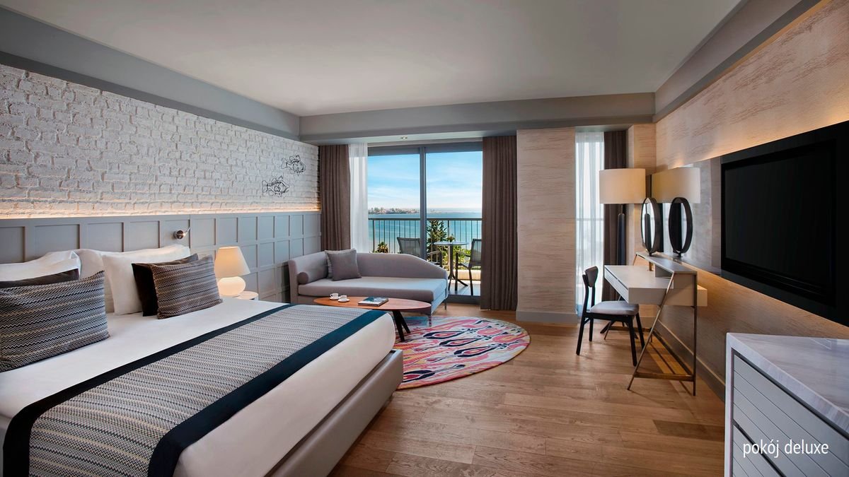 superior: 2-os. (możliwość 1 dostawki – sofa), ok. 34 m², klimatyzowany, łazienka (prysznic, wc; suszarka, szlafrok, kapcie), internet bezprzewodowy, telewizja satelitarna, telefon, sejf, zestaw do kawy/herbaty, minibar; balkon (stolik i krzesełka), boczny widok na morze; deluxe: 2-os. (możliwość 1 dostawki – sofa), ok. 39 m², wyposażenie jak w pokoju superior, widok na morze; pokój deluxe za dopłatą.