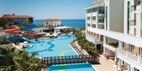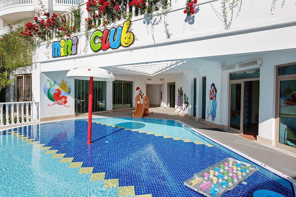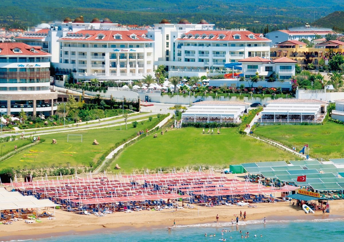 Należy do popularnej sieci Alba Hotels gwarantującej znakomity serwis i jakość usług na bardzo wysokim poziomie. Szczególnie polecany na wakacje z dziećmi, oferuje mnóstwo atrakcji dla całej rodziny. Duży basen ze zjeżdżalniami wodnymi, brodzik dla dzieci, miniklub i świetne animacje to tylko niektóre z licznych atutów hotelu. W ramach bardzo bogatej oferty all inclusive serwowane są urozmaicone i smaczne posiłki, a dla nocnych marków napoje i przekąski przez całą dobę. Przestronne pokoje są eleganckie i komfortowe. Hotel posiada prywatną plażę wyróżnioną certyfikatem jakości Błękitna Flaga z bezpłatnym serwisem i barem objętym all inclusive.