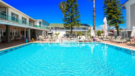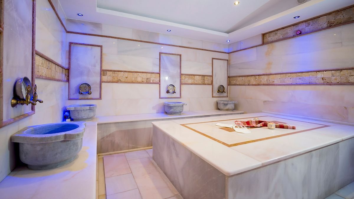 basen, prostokątny kształt, słodka woda, ok. 50 m², gł. do ok. 1,4 m, wydzielona część dla dzieci, przy basenie bezpłatne parasole i leżaki, ręczniki płatne (ok. 1 EUR/dzień); plac zabaw dla dzieci; centrum spa: hammam, płatne: masaże, sauna, peeling.