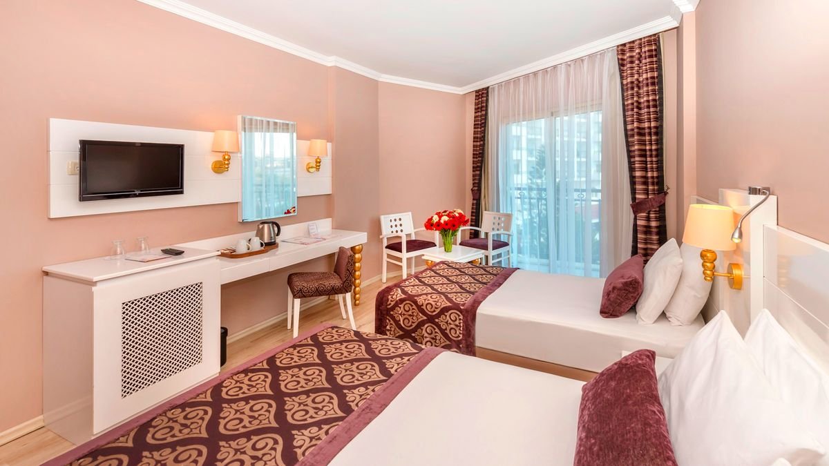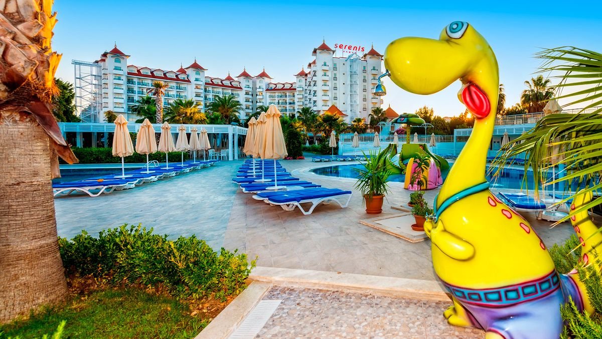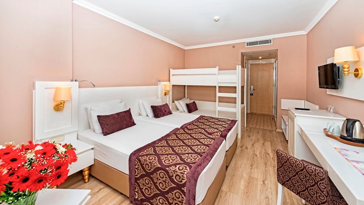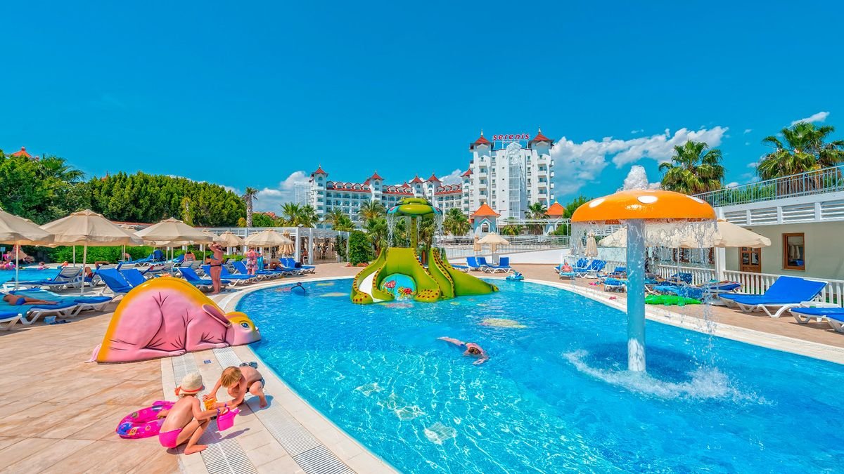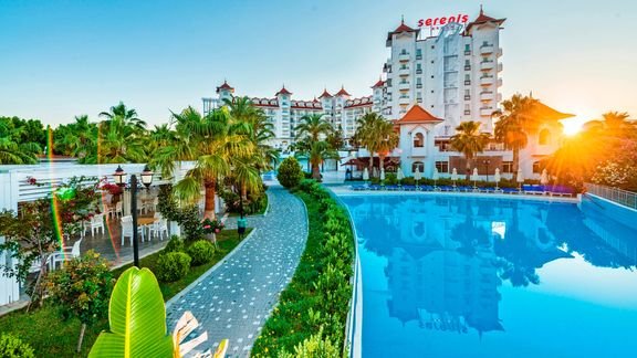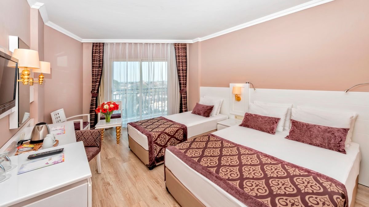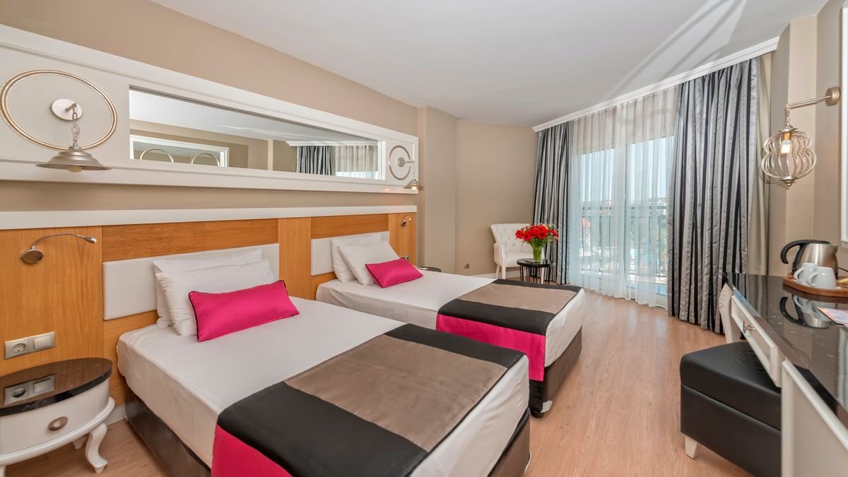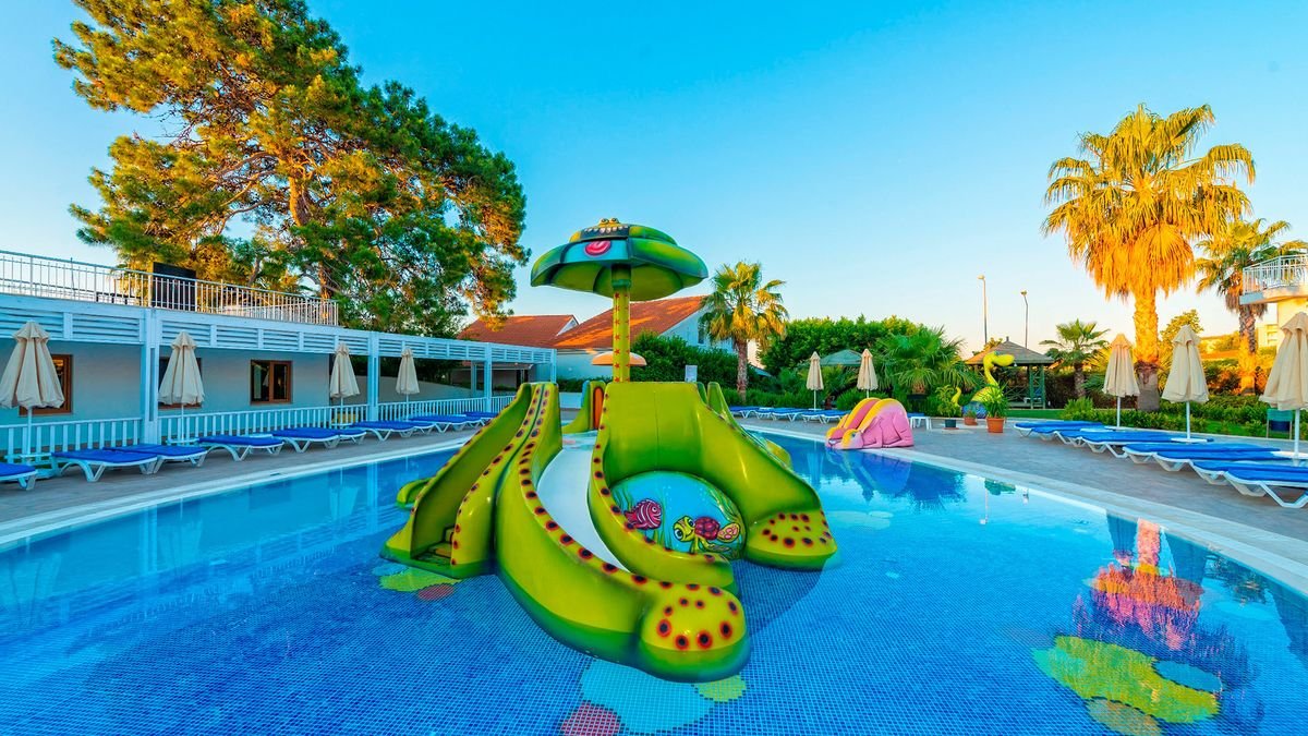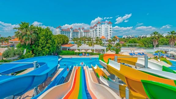 Popularny kompleks hotelowy w sercu Riwiery Tureckiej. Położony w spokojnej okolicy, w zasięgu spaceru od antycznego centrum Side, jest chętnie wybierany na rodzinne wakacje. Hotelowe życie koncentruje się przy basenach, szczególnie popularny jest basen ze sztuczną falą. Dla najmłodszych wczasowiczów przygotowano 2 brodziki, wodne zjeżdżalnie i miniklub prowadzony przez doświadczonych animatorów. Na plaży jest specjalnie wydzielona część z bezpłatnymi leżakami i parasolami oraz barem all inclusive. Profesjonalna obsługa hotelu i wysoka jakość świadczonych usług to gwarancja udanego urlopu. Zdecydowanie wart każdej swojej gwiazdki!
