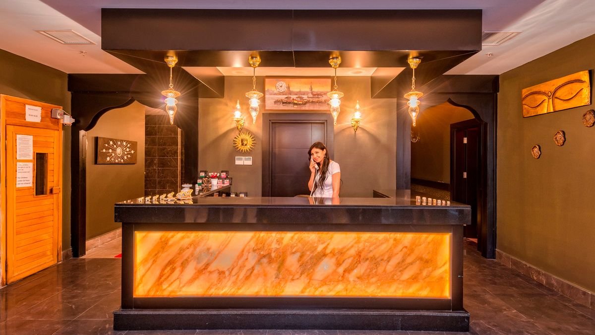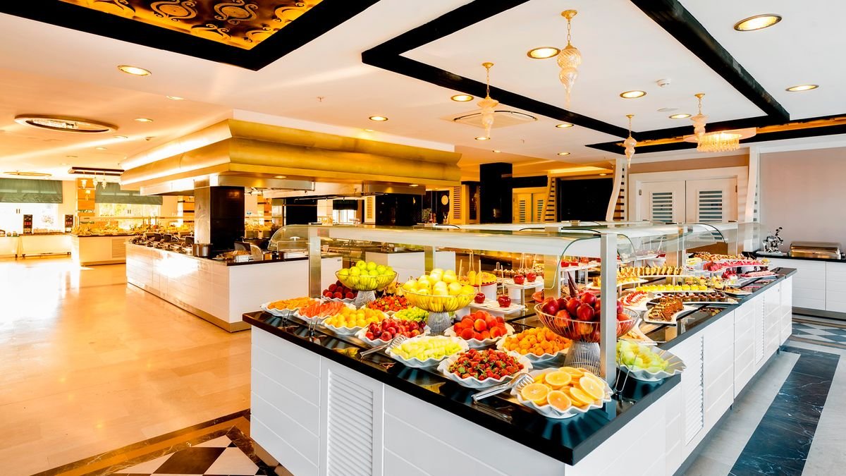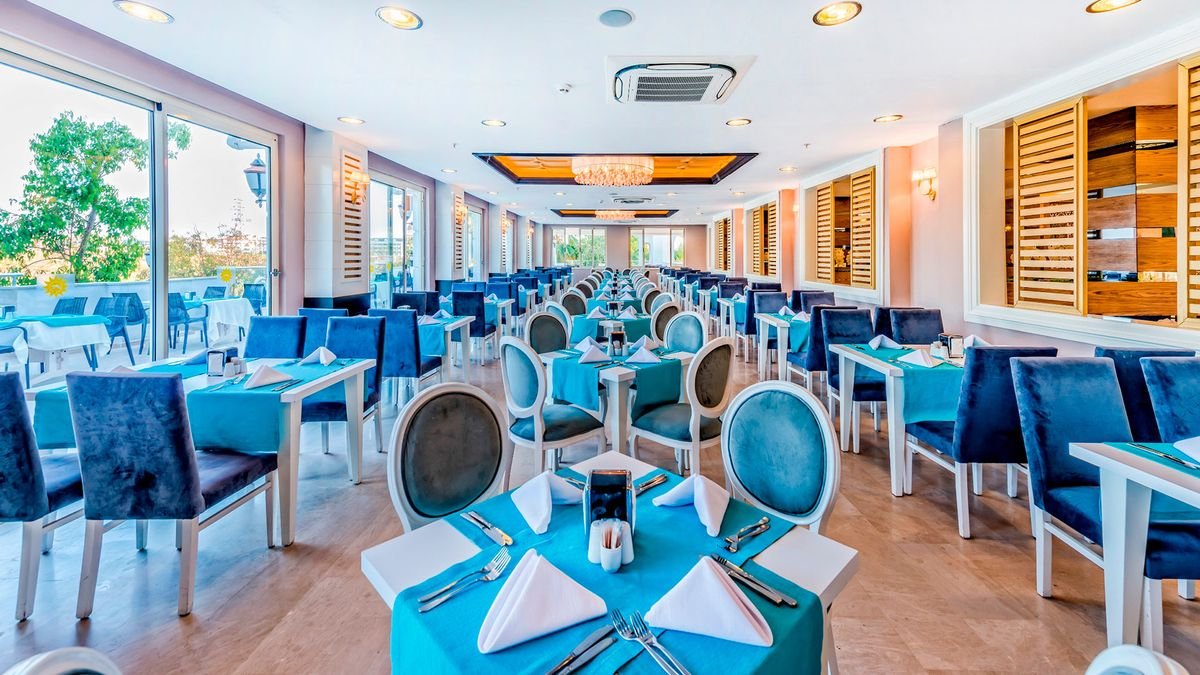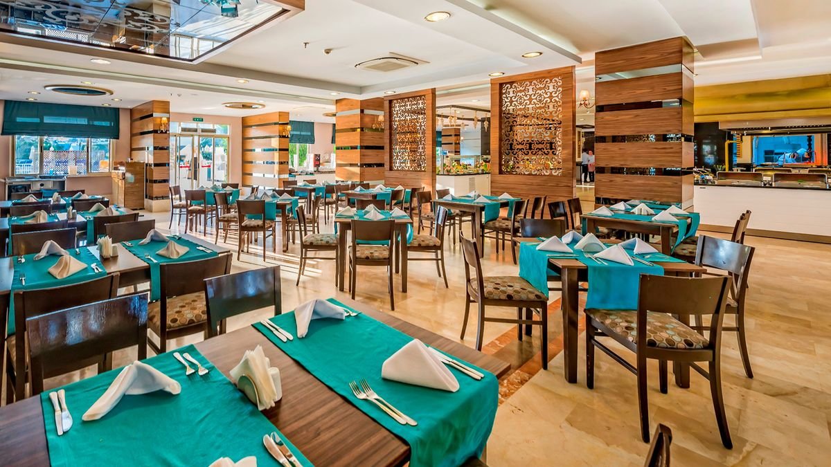 pięciogwiazdkowy, zadbany i elegancki, częściowo odnowiony w 2017 r., 358 pokoi, 1 budynek, 6 pięter, 3 windy, przestronne lobby, całodobowa recepcja, restauracja główna – dania w formie bufetu, kuchnia międzynarodowa, dostępne foteliki dla dzieci, dania wegetariańskie, 3 restauracje à la carte, w tym z kuchnią turecką, bar w lobby, disco bar, snack bar, bar przy basenie, bar na plaży; sala telewizyjna, minimarket, sklep z odzieżą; sala konferencyjna dla 100 osób, taras z widokiem na basen, ogród, za opłatą: internet bezprzewodowy w lobby, pralnia; akceptowane karty kredytowe: Visa, MasterCard.