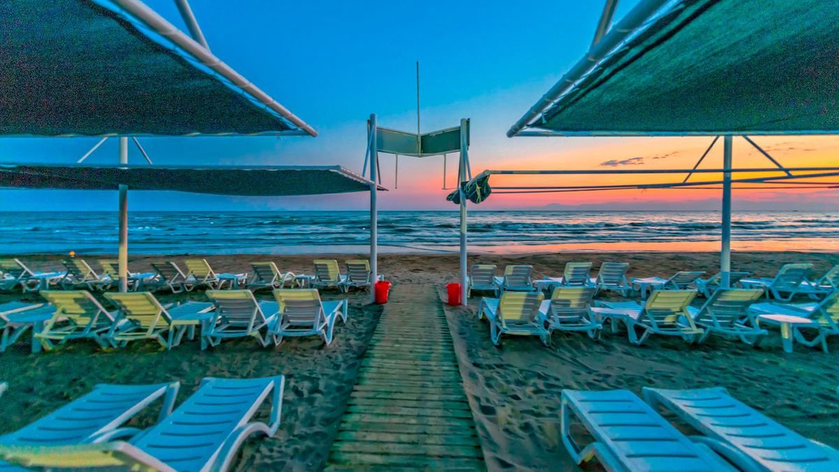 publiczna, piaszczysta, łagodne zejście do morza, ok. 800 m od hotelu, dojście lokalną ulicą lub dojazd hotelowym busem (co ok. 20 min.), na plaży wydzielona część z bezpłatnymi parasolami, leżakami, materacami i ręcznikami, bar objęty all inclusive.
