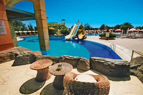 duży basen, powierzchnia ok. 900 m², zjeżdżalnie, słodka woda, głębokość 1,40-1,90 m; basen kryty, powierzchnia ok. 300 m², słodka woda, głębokość 1,40 m; brodzik, powierzchnia ok. 28 m², słodka woda, głębokość 0,40 m; kryty brodzik, powierzchnia ok. 6 m², słodka woda, głębokość 0,37 m; przy basenie bezpłatne leżaki, parasole, materace i ręczniki; 4 korty do tenisa ziemnego (oświetlenie i wypożyczenie sprzętu płatne), tenis stołowy, koszykówka, siatkówka plażowa, rzutki, aerobik, gimnastyka w wodzie, joga, fitness, sauna, łaźnia turecka, łaźnia parowa, mini-klub, mini-disco i kino dla dzieci, animacje dla dzieci, amfiteatr, dzienne i wieczorne animacje dla dorosłych, dyskoteka (napoje płatne); za opłatą: salon gier video i komputerowych, kręgle, bilard, zabiegi w Spa, masaż, jacuzzi, solarium, sporty wodne na plaży.