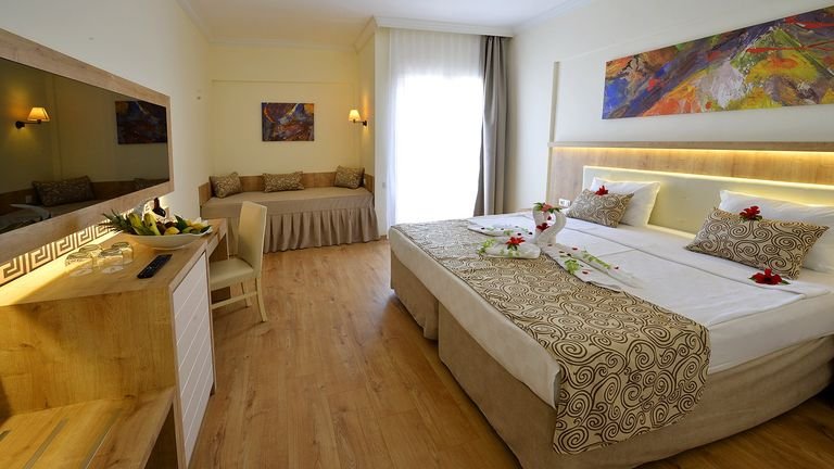 To doskonała propozycja na niezapomniane wakacje w gronie rodziny! Na miejscu czeka wszystko, co potrzebne do relaksu i dobrej zabawy – jest tu kilka basenów, w których można pływać od rana do wieczora, dobrze wyposażona siłownia, kort tenisowy i boisko do siatkówki plażowej, a o wspaniałą atmosferę i rozrywkę dla każdego dba grupa sympatycznych animatorów. Najmłodsi będą zachwyceni miniaquaparkiem i miniklubem, gdzie spędzą beztroskie chwile wraz z równieśnikami, a ci nieco starsi chętnie poopalają się na oddalonej o zaledwie kilka kroków plaży lub odetchną w klimatycznym spa. W przerwach między zabawą i odpoczynkiem warto uzupełnić kalorie w jednej z kilku restauracji serwujących potrawy z różnych zakątków świata i odprężyć się przy schłodzonym drinku w barze.