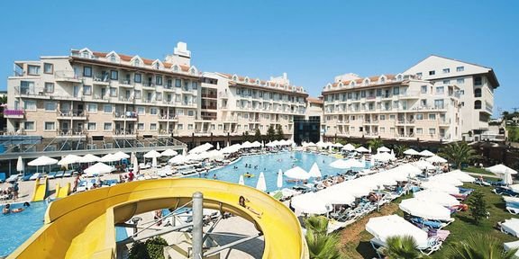 Zadbany, typowo wakacyjny kompleks, cieszący się dobrymi opiniami klientów, jest świetnym miejscem na udane, rodzinne wakacje na tureckim wybrzeżu. Położony w rejonie Side, bardzo popularnym wśród turystów z Polski jest oddalony zaledwie kilka kroków od piaszczystej plaży z wydzieloną częścią dla Gości hotelu, gdzie do dyspozycji jest bezpłatny serwis plażowy i bar objęty formułą all inclusive. Komfortowe pokoje są odnowione, praktycznie urządzone i bardzo zadbane. Na miejscu moc atrakcji dla dorosłych i najmłodszych wczasowiczów: baseny, zjeżdżalnie, miniklub oraz dzienne i wieczorne animacje. Po aktywnym dniu warto odwiedzić hotelowe centrum Spa, gdzie można zrelaksować się w tradycyjnej tureckiej łaźni - hammamie lub skorzystać z bogatej oferty masaży.
