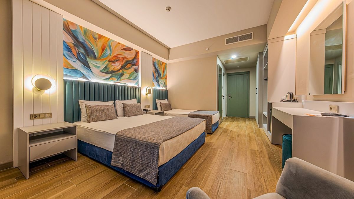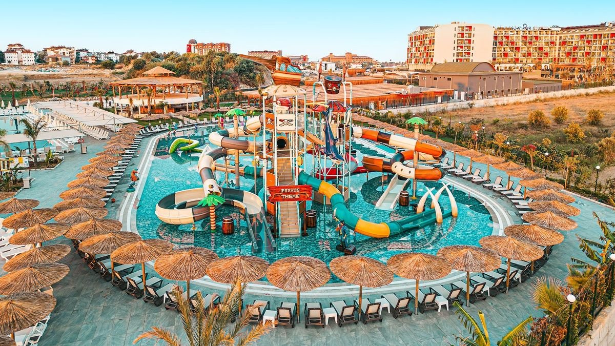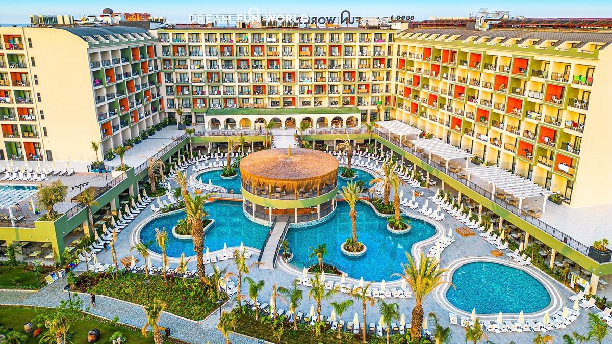Nowo wybudowany, elegancki hotel znanej i lubianej sieci DreamWorld Hotels, to doskonała propozycja na wypoczynek w słonecznej Turcji! Duży kompleks z basenami i 2 aquaparkami, w tym dla dzieci sprawia, że to idealne miejsce również na rodzinne wakacje. Nowocześnie urządzony i dysponujący hotelową piaszczystą plażą z bezpłatnym serwisem, sprawdzi się także wśród fanów leniwego plażowania z orzeźwiającym napojem w ręku. Na miejscu, do dyspozycji Gości przygotowano 2 restauracje, 3 bary i cukiernię, bogate zaplecze sportowo-rekreacyjne, a także przestronne, komfortowe i dobrze wyposażone pokoje, w których wypoczniesz po dniu pełnym ulubionych atrakcji.