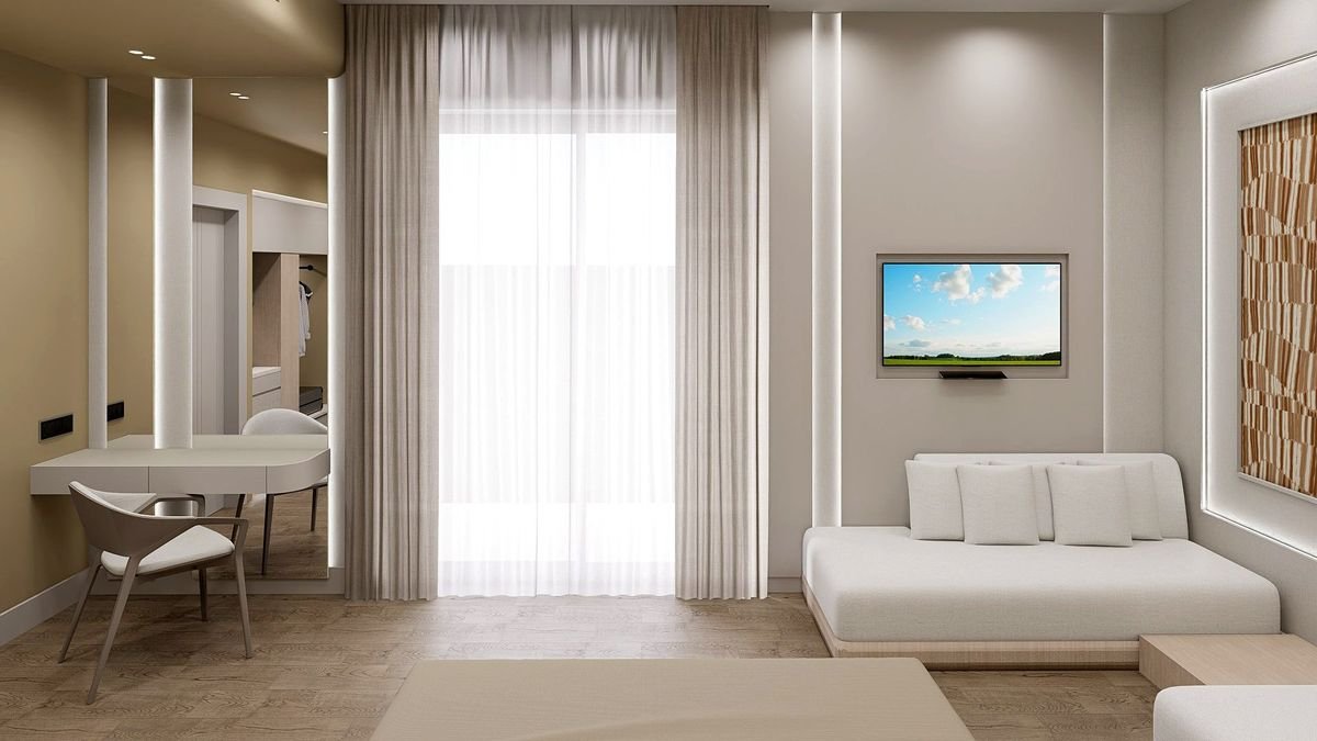 Nowa propozycja na rodzinne wakacje pełne atrakcji – planowane otwarcie w czerwcu 2026 r.! Na miejscu czekają baseny oraz 2 aquaparki ze zjeżdżalniami, które zapewnią świetną zabawę zarówno dzieciom, jak i dorosłym. Najmłodsi znajdą tu miniklub i animacje, a dorośli chwilę wytchnienia w stylowym spa. Całość zachwyca nowoczesnym i minimalistycznym dizajnem, gdzie przestronne i starannie zaprojektowane pokoje pozwolą na odpoczynek po dniu pełnym wrażeń. Tutaj każdy znajdzie coś dla siebie, a urlop upłynie w świetnej atmosferze! Prezentowany materiał graficzny przedstawia wizualizację obiektu.