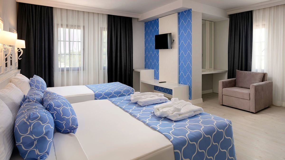 Przygotuj się na niezapomniany turecki urlop w zadbanym i stylowym hotelu położonym tuż przy pięknej plaży z niesamowitymi widokami na błękitne Morze Śródziemne! Mnóstwo atrakcji dla całej rodziny pozwoli aktywnie spędzić czas niezależnie od wieku: znaleźć tutaj można m.in. basen ze zjeżdżalniami, siłownię, kort tenisowy, liczne animacje oraz takie rozrywki dla dzieci jak miniklub, czy brodzik. Pyszne posiłki w bogatej ofercie all inclusive pomogą zregenerować siły, orzeźwiające koktajle ugaszą nawet największe pragnienie, jasne i przestronne pokoje pozwolą na chwile prywatności i odpoczynku, a na tych, którzy szukają pełni relaksu, czeka świetnie wyposażone centrum spa, gdzie oddać się można odprężającym zabiegom. Tutaj czeka Cię prawdziwie pięciogwiazdkowe doświadczenie!