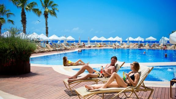 Duża przestrzeń, piękny, zadbany ogród z drzewami cytrusowymi i doskonała atmosfera w hotelu tylko dla dorosłych! Położony w pierwszej linii brzegowej, przy hotelowej plaży z bezpłatnym serwisem jest idealną propozycją na pełne relaksu wakacje we dwoje. Goście mają do dyspozycji kilka restauracji, w tym z kuchnią azjatycką i turecką, eleganckie bary, doskonałe na popołudniowy chillout, a także komfortowe pokoje, wyposażone we wszystkie niezbędne udogodnienia. Na miejscu są baseny z pięknym widokiem na morze i liczne udogodnienia sportowo-rekreacyjne, dzięki którym można zadbać o wakacyjną formę. Najwyższa jakość usług i serwisu to gwarancja, że te wakacje będą niezapomnianym przeżyciem!