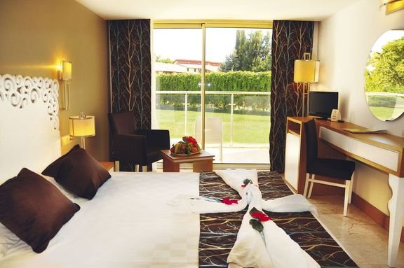 pięciogwiazdkowy, komfortowy, wakacyjny resort składający się z budynku głównego i części klubowej, zbudowany w 1989 r., odnowiony w 2007 r., 223 pokoje w budynku głównym i 420 pokoi w części klubowej, 42 budynki, budynek główny - 5 pięter, budynki klubowe - 2 piętra, 4 windy w budynku głównym, przestronne lobby, całodobowa recepcja, restauracja główna - dania w formie bufetu, kuchnia międzynarodowa, dostępne foteliki dla dzieci, dania wegetariańskie, 4 restauracje à la carte: kuchnia włoska, turecka, meksykańska i rybna (wymagana wcześniejsza rezerwacja); 5 barów, w tym przy basenie i na plaży, mini-market; centrum konferencyjne dla 850 osób, ogród, bezpłatny internet bezprzewodowy w lobby; za opłatą: punkt internetowy, room-service, opiekunka do dziecka, fotograf, fryzjer, pralnia, wypożyczalnia samochodów; akceptowane karty kredytowe: Visa, MasterCard.