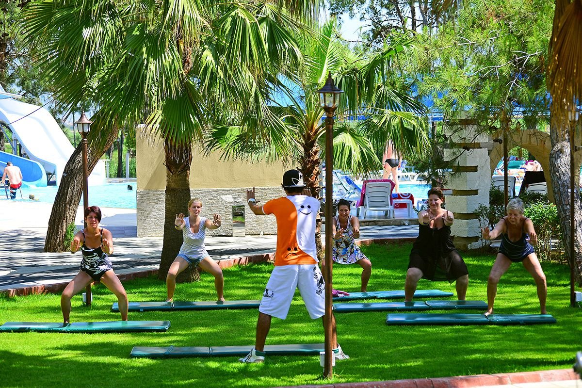 2 baseny, nieregularny kształt, słodka woda: ok. 370 m², gł. do 1,6 m, wydzielona część dla dzieci i ok. 265 m², gł. do 1,5 m, 2 zjeżdżalnie, przy basenach bezpłatne parasole, leżaki, materace i ręczniki; basen kryty, kwadratowy kształt, ok. 140 m², gł. do 1,5 m; kort tenisowy z oświetleniem i wypożyczalnią sprzętu (płatne), tenis stołowy, siatkówka plażowa, koszykówka, łucznictwo, rzutki, aerobik, boccia, siłownia; plac zabaw dla dzieci, miniklub (4-12 lat), dyskoteka, amfiteatr, dzienne i wieczorne animacje dla dorosłych i dzieci; za opłatą: bilard, sala gier, rzutki, piłkarzyki, sporty wodne na plaży; centrum spa: bezpłatnie: łaźnia turecka, sauna, siłownia; za opłatą: maseczki na twarz, peeling, masaże.