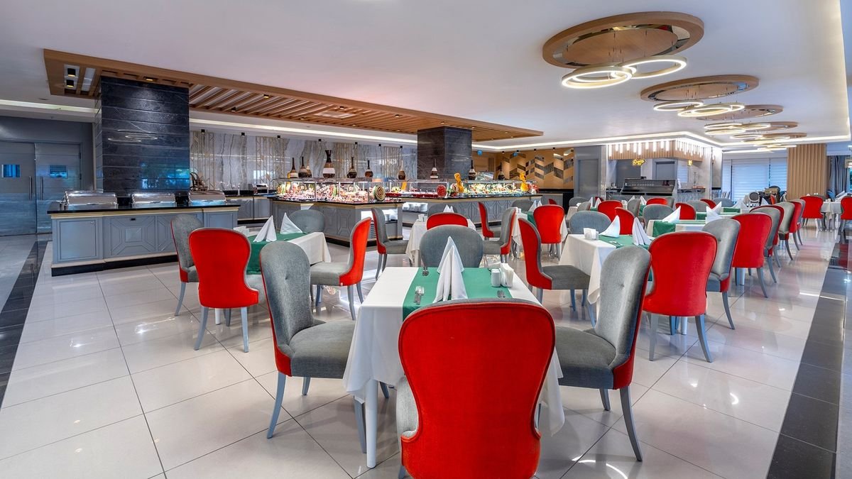 pięciogwiazdkowy, zbudowany w 2014 r., 180 pokoi, 2 budynki, 4 piętra, 2 windy, przestronne lobby, całodobowa recepcja, restauracja główna – dania w formie bufetu, kuchnia międzynarodowa, dania wegetariańskie, 3 restauracje à la carte - kuchnia włoska, turecka i meksykańska, w restauracjach dostępne foteliki dla dzieci, 4 bary, w tym przy basenie i na plaży, fajka wodna (dodatkowo płatna); sklepy, butik z odzieżą; sala konferencyjna dla 150 osób, ogród, bezpłatny internet bezprzewodowy na terenie całego hotelu; za opłatą: lekarz na wezwanie, fryzjer, wypożyczalnia samochodów, room-service; udogodnienia dla osób z niepełnosprawnościami; akceptowane karty kredytowe: Visa, MasterCard, Eurocard.