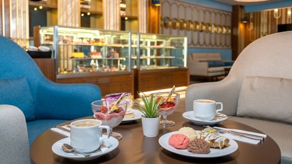 śniadanie (7.00-10.00), późne śniadanie (10.00-10.30), obiad (12.30-14.30), kolacja (18.30-20.30) w formie bufetu w restauracji głównej; raz na pobyt kolacja w jednej z restauracji à la carte (wymagana wcześniejsza rezerwacja); ciasta w barze w lobby (11.00-18.00); nocny bufet w restauracji głównej (21.00-5.00); napoje bezalkoholowe oraz lokalne i wybrane importowane napoje alkoholowe w wyznaczonych barach (10.00-24.00); wymagane noszenie opasek all inclusive.