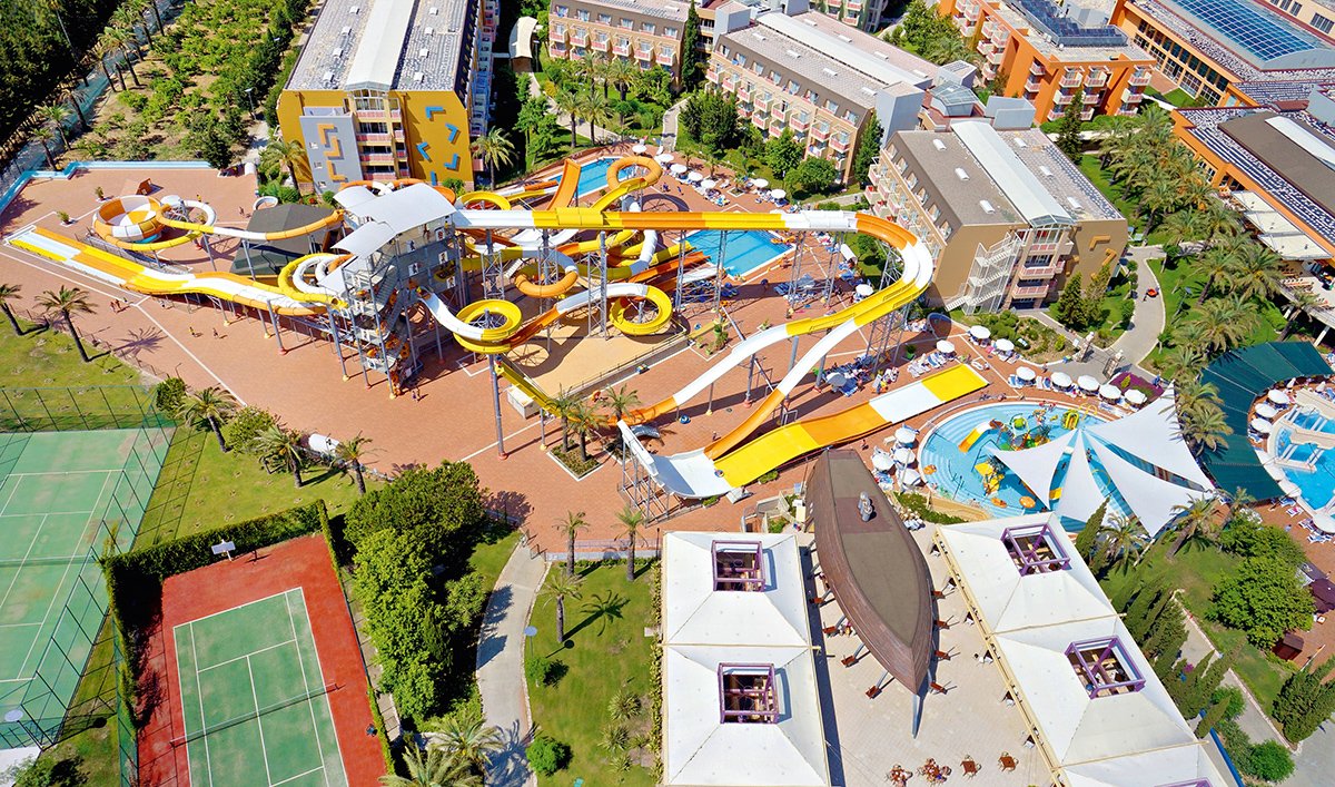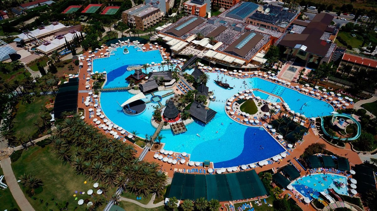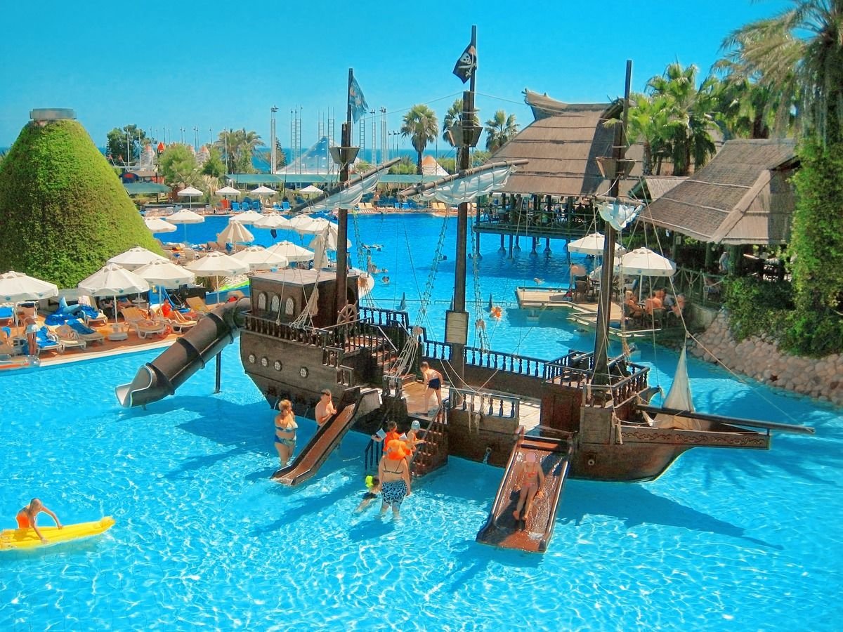 czterogwiazdkowy, rodzinny, położony na obszarze 169 tys. m², zbudowany w 2002 r., corocznie odnawiany, 819 pokoi, kilka 4-piętrowych budynków, 9 wind, przestronne lobby, całodobowa recepcja, restauracja główna – dania w formie bufetu, dostępne foteliki i menu dla dzieci, 3 restauracje à la carte: kuchnia turecka, włoska, chińska (wymagana wcześniejsza rezerwacja), bar w lobby, Nautilus Disco, Navigator’s Bar (dyskoteka przy plaży), Long John Silvers Bar, Island Snack Bar przy basenie, Moby Dick Snack Bar, 2 bary przy plaży; kantor, sale telewizyjne, pasaż handlowy: sklep z pamiątkami, sklep z biżuterią, odzieżą, fotograf; centrum konferencyjne dla 550 osób, ogród, bezpłatny internet bezprzewodowy w lobby; za opłatą: kawiarenka internetowa, room-service, opiekunka do dziecka, pralnia, możliwość wypożyczenia wózka dla dzieci, wypożyczalnia samochodów; udogodnienia dla niepełnosprawnych; akceptowane karty kredytowe: Visa, MasterCard.