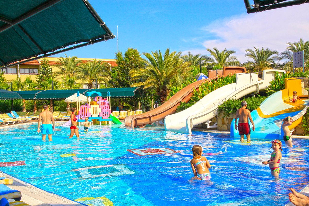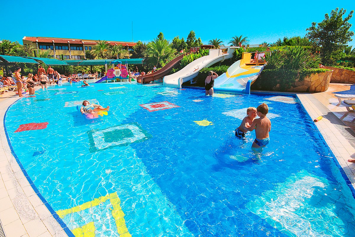 basen, nieregularny kształt, słodka woda, ok. 9600 m², gł. 0,4-1,4 m, zjeżdżalnie, brodzik dla dzieci, słodka woda, gł. 0,4 m, minizjeżdżalnie, przy basenach bezpłatne leżaki, parasole, materace i ręczniki; basen kryty, słodka woda, ok. 463 m², gł. 1,4 m, kryty brodzik dla dzieci, słodka woda, gł. 0,4 m; 4 korty tenisowe, tenis stołowy, siatkówka plażowa, miniboisko do piłki nożnej, rzutki, gimnastyka w wodzie, aerobik, stretching, siłownia, fitness, łucznictwo; plac zabaw dla dzieci (ok. 5000 m²), miniklub, amfiteatr dla dzieci, minidisco, amfiteatr, dzienne i wieczorne animacje dla dorosłych, dyskoteka; za opłatą: oświetlenie kortu i wypożyczalnia sprzętu do tenisa, bilard, szkółka nurkowania, sporty wodne na plaży, centrum spa: sauna, łaźnia turecka, łaźnia parowa, solarium, peelingi, masaż.
