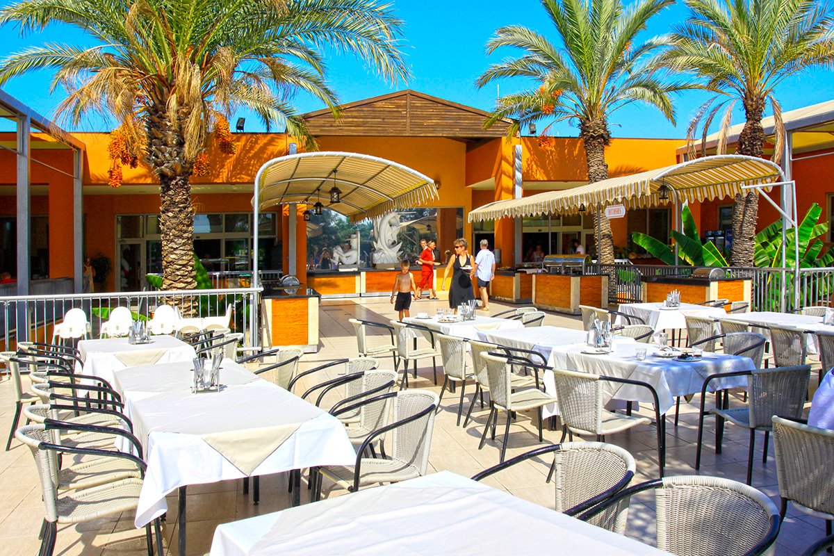 śniadanie (7.00-10.00), późne śniadanie (10.00-10.30), obiad (12.30-14.30), bufet dla dzieci (18.00-21.00), kolacja (18.00-21.00) w formie bufetu w restauracji głównej; przekąski (11.30-16.30), kawa, herbata i ciastko (16.30-17.00) w wyznaczonym barze, nocna zupa (24.00-00.30) w restauracji głównej; nielimitowana ilość napojów bezalkoholowych i lokalnych alkoholi w wyznaczonych barach (10.00-1.00); raz na pobyt kolacja w restauracji à la carte (wymagana wcześniejsza rezerwacja); wymagane noszenie opasek all inclusive.