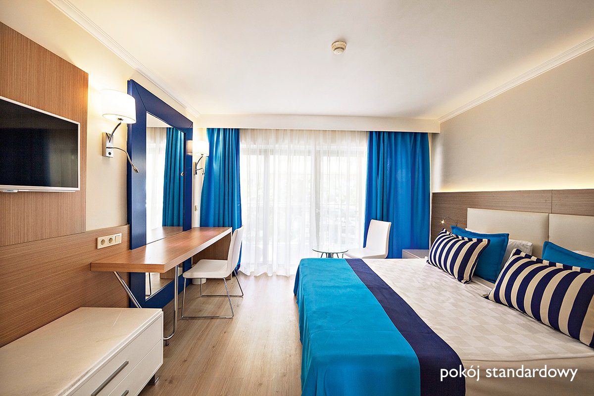 standardowy: 2-os. (możliwość 1 dostawki dla os. dorosłej lub 2 dostawek dla dzieci), ok. 28 m², wygodnie urządzony, klimatyzowany, łazienka (wanna lub prysznic, wc; suszarka), telewizja satelitarna, telefon; za opłatą: sejf, minibar; bezpłatne łóżeczko dla dziecka do 2 lat na zamówienie przed przyjazdem; balkon (stolik i krzesełka); rodzinny : 2-os. (możliwość 1 lub 2 dostawek), ok. 33-36 m², pokój dzienny i sypialnia oddzielone drzwiami, wyposażenie jak w pokoju standardowym; pokój rodzinny za dopłatą.