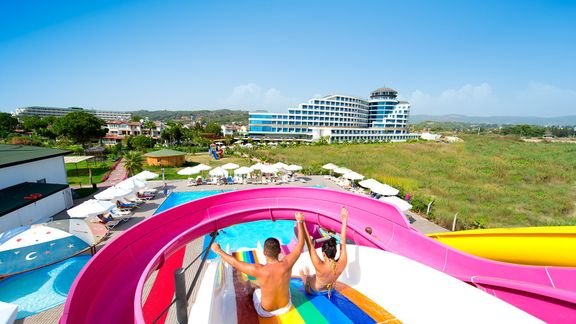Tu połączysz błogi relaks z doskonałą zabawą! Niedawno odnowiony, położony tuż przy prywatnej plaży wpadającej do ciepłego Morza Śródziemnego i zaledwie kilka kroków od sklepów oraz barów, a na miejscu oferuje wszystko, co niezbędne, więc nie trzeba się stąd ruszać nawet na krok. Eleganckie wnętrza, komfortowe pokoje i centrum spa sprzyjają wypoczynkowi, do dyspozycji Gości również kilka barów i restauracji z kuchnią turecką, włoską i międzynarodową, na aktywnych czeka bogata oferta sportowa i rozrywkowa, w tym kort tenisowy, siłownia, animacje, wieczorne show i 3 baseny, z aż 11 zjeżdżalniami dla starszych i młodszych, które zapewnią ekscytującą zabawę dla każdego!
