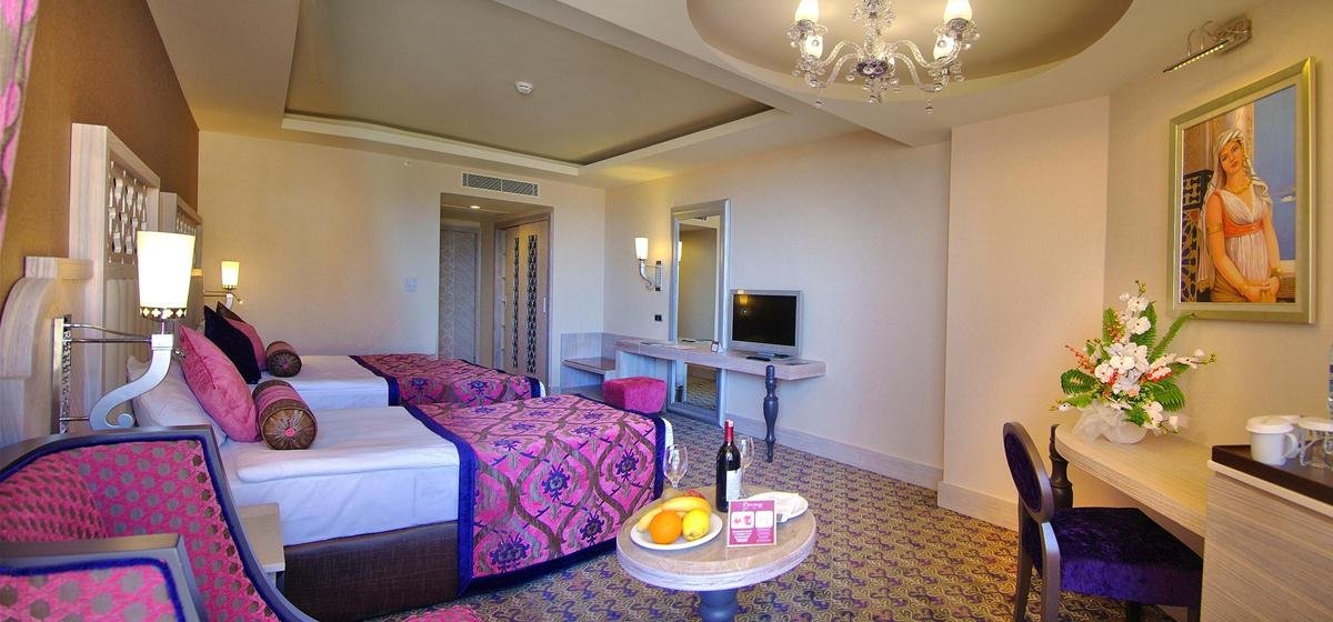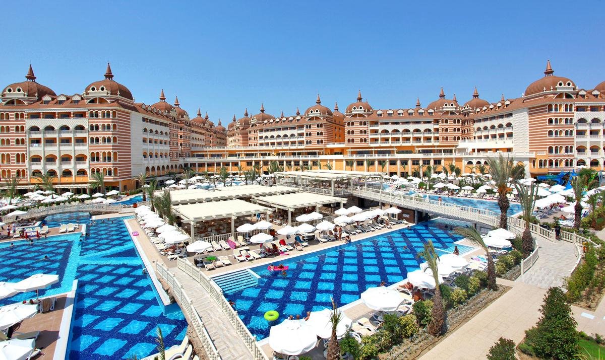pięciogwiazdkowy, zbudowany w 2012 r., 579 pokoi, 2 budynki, 6 pięter, 10 wind, przestronne lobby, całodobowa recepcja, restauracja główna Alhambra – dania w formie bufetu, kuchnia lokalna i międzynarodowa, 5 restauracji à la carte: Fettucini – kuchnia włoska, Miyako – kuchnia dalekowschodnia, Kuzine – kuchnia turecka, Captain – kuchnia śródziemnomorska, La Viva Fiesta – kuchnia meksykańska, 7 barów, w tym 1 w lobby, 1 przy basenie, 1 na plaży, snack bar, cukiernia; minimarket; centrum konferencyjne dla 1000 os., bezpłatny internet bezprzewodowy; za opłatą: pralnia; akceptowane karty kredytowe: Visa i MasterCard.