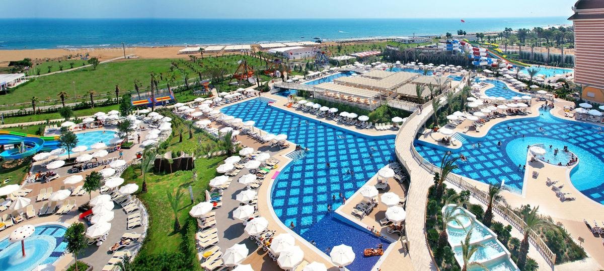 Wyjątkowy i luksusowy, zaprasza na urlop tuż przy cudownej, piaszczystej plaży otwierającej się na błękitne wody Morza Śródziemnego. Położony w spokojnej okolicy, otoczony zielenią, zachwyca ogromnym terenem z imponującymi basenami ze zjeżdżalniami i tarasami, z których można do woli podziwiać cudowne widoki. Odpocznij w komfortowym i przestronnym pokoju, zjedź pyszne śniadanie w hotelowej restauracji i skorzystaj z możliwości spędzenia wolnego czasu na miejscu lub zaplanuj zwiedzanie okolicy – niedaleko stąd do centrum Side z mnóstwem antycznych zabytków. Na koniec dnia polecamy wizytę w w profesjonalnym centrum spa, które dzięki specjalnym terapiom pozwoli Ci poznać, co to prawdziwy relaks.