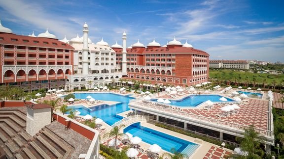 Unikalny i ekskluzywny, wyglądem przypomina słynną świątynię miłości – Tadż Mahal. Skierowany w stronę morza, kilka kroków od pięknej, obsypanej piaskiem plaży, proponuje wypoczynek w iście królewskim stylu. Położony na rozległym terenie, zapewnia wszystkie atrakcje potrzebne do spędzenia wyjątkowego i aktywnego urlopu z rodziną – piękne baseny, aquapark, bogatą ofertę sportową, a nawet centrum spa z siłownią. Hotelową rozrywkę zapewniają profesjonalne animacje dla Gości w każdym wieku. Komfortowe i bardzo przestronne pokoje z orientalnymi akcentami pozwolą wygodnie odpocząć po dniu pełnym wrażeń.