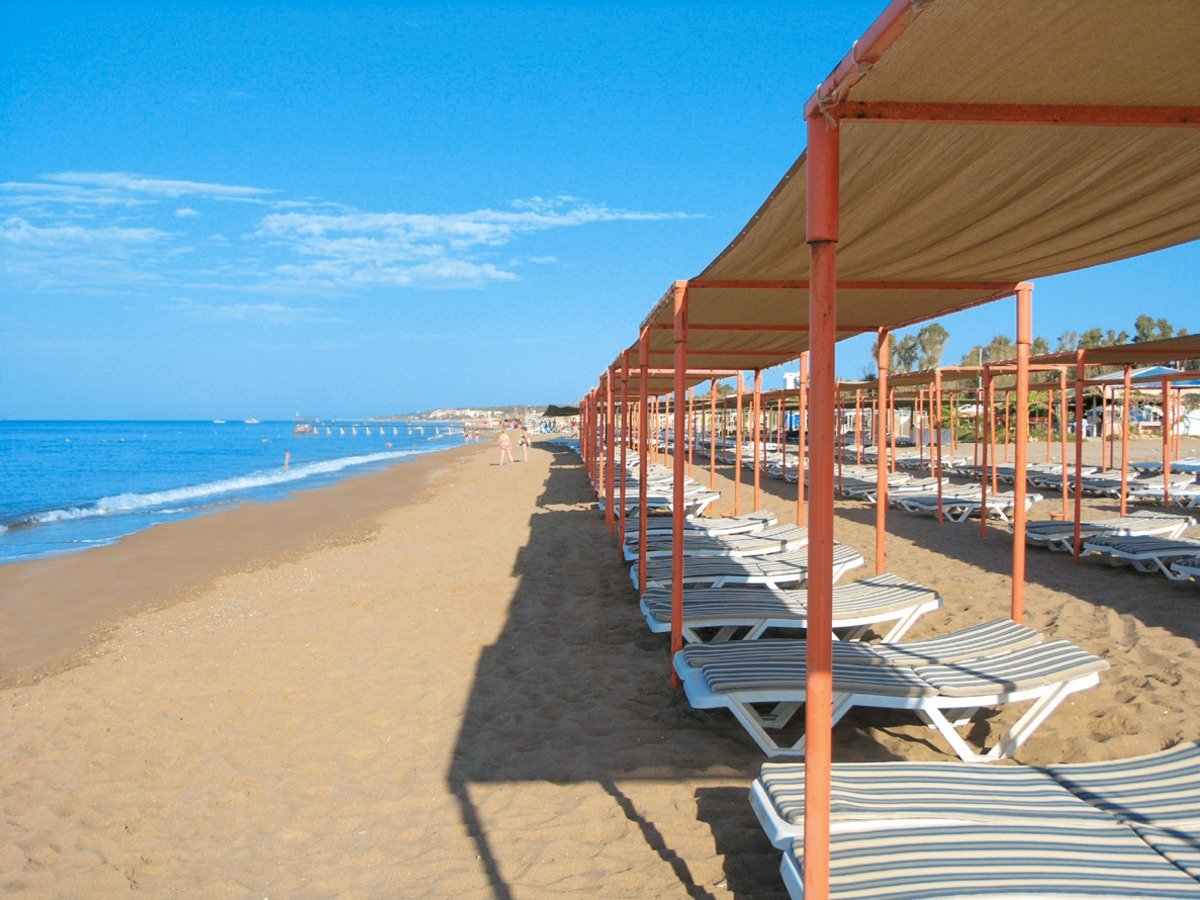 Saray Beach, hotelowa, piaszczysta, łagodne zejście do morza, wyróżniona certyfikatem Błękitna Flaga, ok. 250 m od hotelu, dojście ulicą lokalną, bezpłatne parasole, leżaki i materace, ręczniki za kaucją (ok. 10 EUR); bar na plaży objęty formułą all inclusive: napoje chłodzące, piwo, przekąski.