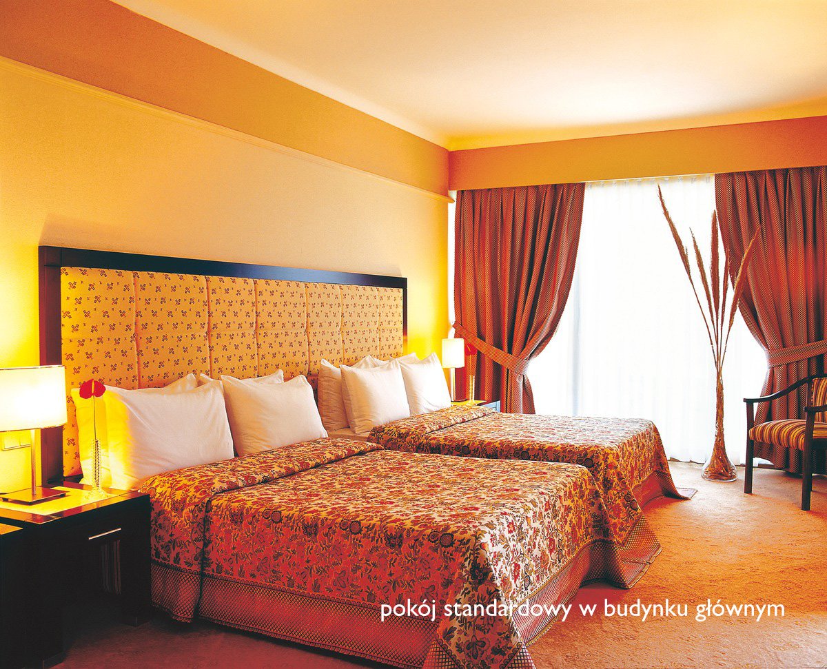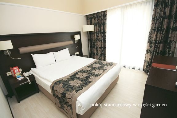 standardowy w części Garden: 2‑os. (możliwość 1 lub 2 dostawek), ok. 20 m², klimatyzowany, łazienka (wanna lub prysznic, wc; suszarka), telewizja satelitarna, telefon, minibar (woda i napoje bezalkoholowe na powitanie), sejf (płatny ok. 2 EUR/dzień); bezpłatne łóżeczko dla dziecka do 2 lat na zamówienie przed przyjazdem; balkon (stolik i krzesełka); standardowy w budynku głównym: 2-os. (możliwość 1 lub 2 dostawek), ok. 26 m², elegancki, klimatyzowany; wyposażenie jak w pokoju w części Garden; pokój standardowy w budynku głównym za dopłatą.