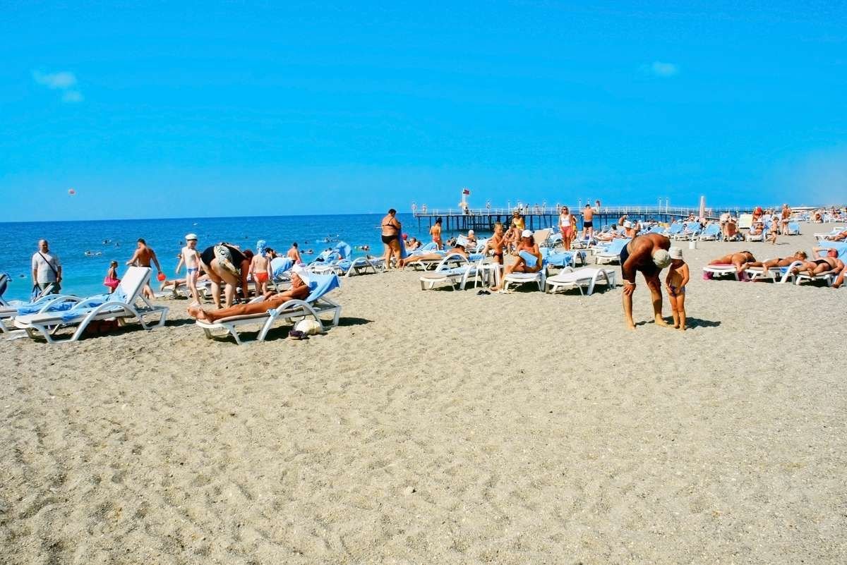 hotelowa, szeroka, piaszczysto-żwirkowa, łagodne zejście do morza, bezpośrednio przy hotelu bezpłatne parasole, leżaki, materace i ręczniki, bar hotelowy objęty ultra all inclusive.