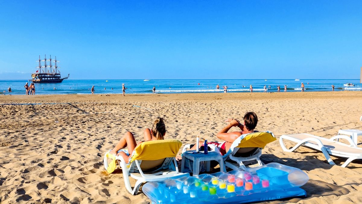 hotelowa, piaszczysta, łagodne zejście do morza, wyróżniona certyfikatem Błękitna Flaga, ok. 200 m od hotelu, dojście drogą lokalną i promenadą, bezpłatne parasole, leżaki, materace i ręczniki (wymiana ok. 1 EUR); bar objęty all inclusive (napoje chłodzące, przekąski).