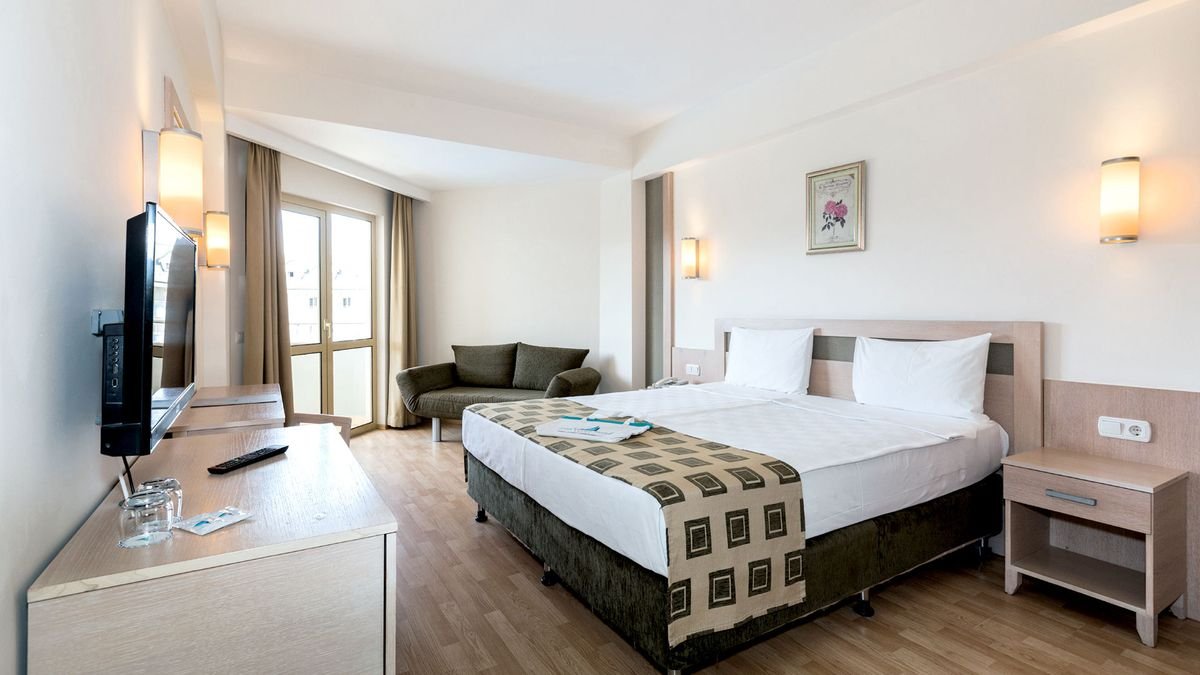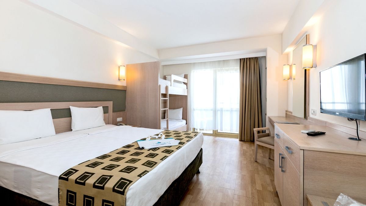 standardowy: 2-os. (możliwość 1 lub 2 dostawek dla dzieci – łóżko piętrowe), ok. 24-30 m², zadbany, indywidualnie sterowana klimatyzacja, łazienka (prysznic, wc; suszarka), telewizja satelitarna, telefon, minibar (na powitanie napoje chłodzące, codziennie uzupełniany w wodę), sejf (płatny: ok. 2 EUR/dzień); bezpłatne łóżeczko dla dziecka do 2 lat na zamówienie przed przyjazdem; balkon (stolik i krzesełka).
