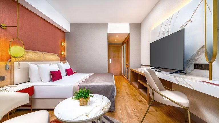 Spełnij swoje marzenie o luksusowym wypoczynku! Położony przy piaszczystej plaży, znany z wysokiego poziomu usług, zachwyca Gości od pierwszej chwili. Spodoba się szczególnie tym, którzy cenią sobie aktywny wypoczynek – basen, korty tenisowe i siłownia to tylko część atrakcji jakie czekają na miejscu. W eleganckich restauracjach serwowane są wyszukane dania, w tym klasyczne włoskie specjały i przysmaki kuchni tureckiej. Relaksujący wieczór w spa lub podziwianie zachodu słońca na tarasie z przepięknym widokiem na morze dopełni wspaniały, wakacyjny dzień. Hotel przyjmuje tylko Gości powyżej 16. roku życia.