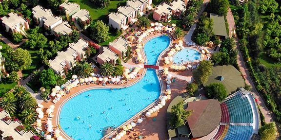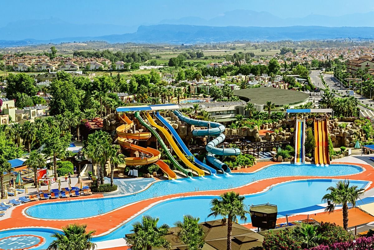 Gości wybierających się do tego hotelu czeka znakomita zabawa! Największą atrakcją kompleksu jest aquapark z 11 zjeżdżalniami, przystosowanymi zarówno dla najmłodszych jak i dla dorosłych, a sympatyczny zespół animatorów dba o dobry humor wszystkich wczasowiczów. Liczne atrakcje dla dzieci i przestronne pokoje, które w komfortowych warunkach pomieszczą 4 osoby, czynią go idealnym na wypoczynek w gronie rodziny. Jest atrakcyjnie położony przy piaszczystej plaży, do której można łatwo dostać się pieszo bądź dojechać hotelowym meleksem. Tuż przy hotelu ciągnie się piękna trasa spacerowa prowadząca do antycznego centrum Side.