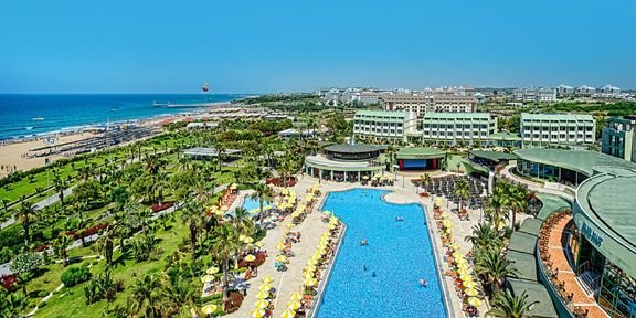 Pięknie położony, przy szerokiej, piaszczystej plaży i urokliwej promenadzie jest idealnym miejscem na pełen relaksu wypoczynek. Na terenie kompleksu rozmieszczone są hamaki i ławeczki zapraszające do odpoczynku, a leżaki na plaży ocieniono baldachimami. Aquapark ze zjeżdżalniami, 3 minikluby dla dzieci i nastolatków w różnych grupach wiekowych, różnorodne animacje oraz strzeżona plaża wyróżniona certyfikatem czystości i bezpieczeństwa sprawiają, że hotel jest idealny także na wakacje z dziećmi. Kiedy dzieci będą oddawać się zabawie, dorośli mogą odpocząć w eleganckim i przestronnym spa oferującym bezpłatnie kilka hammamów i saunę. Smakoszy ucieszą urozmaicone posiłki serwowane w ramach bogatej oferty all inclusive. Hotel jest także świetną bazą wypadową do zwiedzania okolicy – warto wybrać się stąd na wycieczkę do antycznego Side.