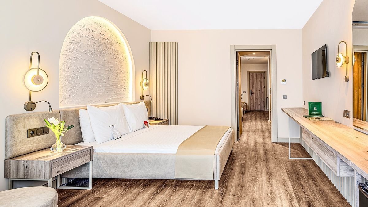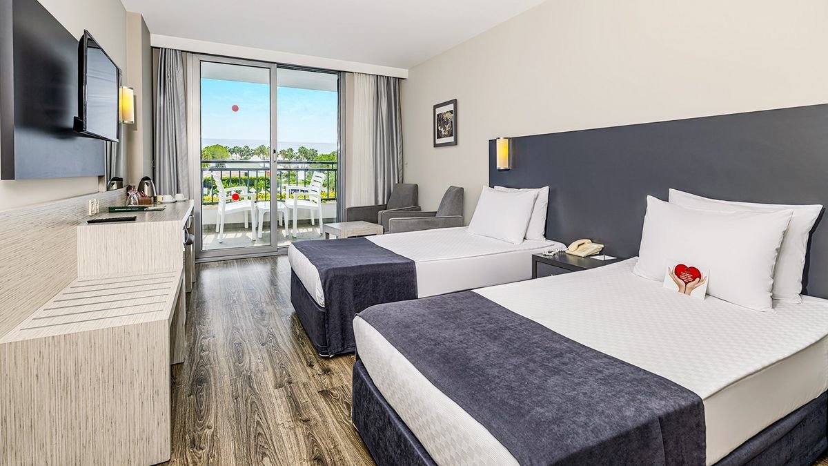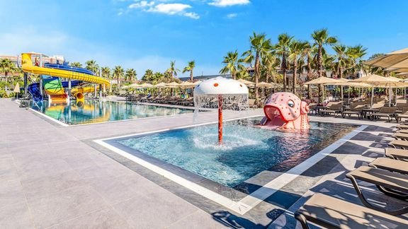 Polecany na rodzinne wakacje, jest położony w spokojnej okolicy, tuż przy szerokiej piaszczysto-żwirowej plaży. To idealne miejsce dla miłośników aktywnego wypoczynku – basen, zjeżdżalnie, kort tenisowy, boiska sportowe i animacje nie pozwolą na nudę. Goście chwalą miłą obsługę, smaczną hotelową kuchnię oraz komfortowe, przestronne pokoje.