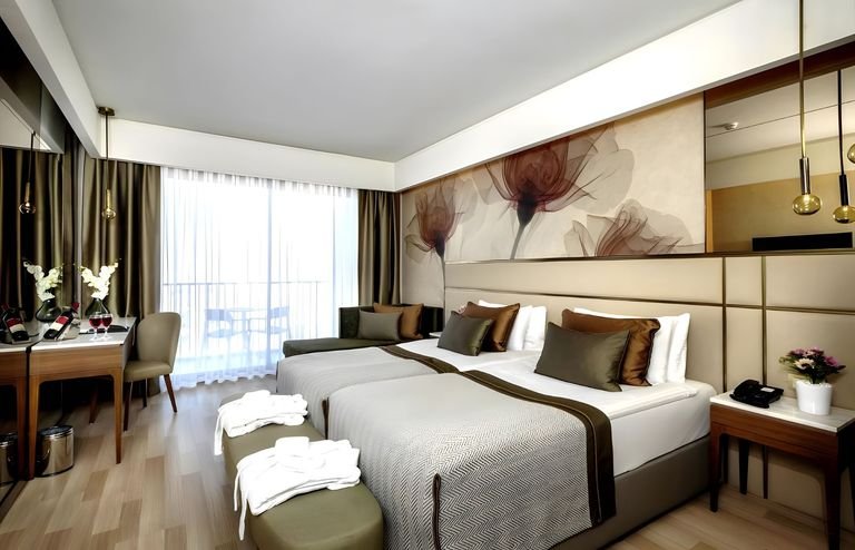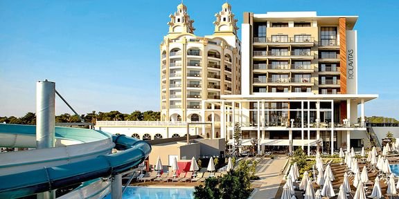 Miejsce gdzie można poczuć prawdziwie wakacyjną atmosferę! Położony w samym sercu malowniczej przyrody – zieleni, gór w tle i oddalonego o kilka kroków Morza Śródziemnego, blisko Manavgat słynącego z niesamowitych wodospadów, jest świetną propozycją na rodzinne wakacje. Na miejscu jest wiele możliwości spędzania wolnego czasu, do dyspozycji Gości są 3 baseny i centrum spa, gdzie można w pełni zrelaksować się i zadbać nie tylko o ciało, ale i o ducha. Wyszukane dania z hotelowych restauracji zaspokoją podniebienia najbardziej wybrednych osób. Do tego sympatyczna i pomocna obsługa oraz elegancko i nowocześnie urządzone pokoje – czego chcieć więcej?