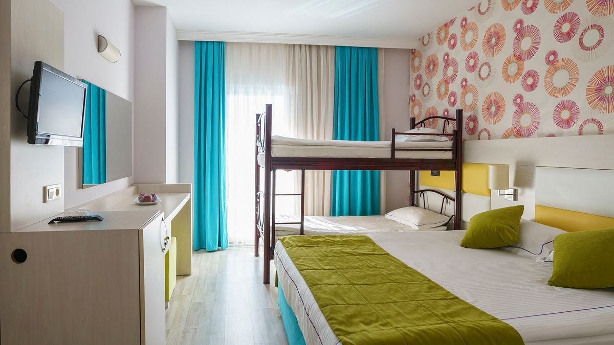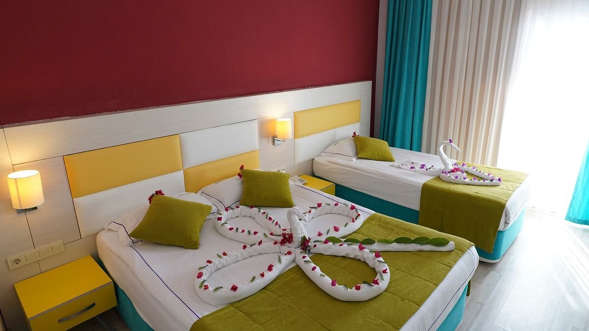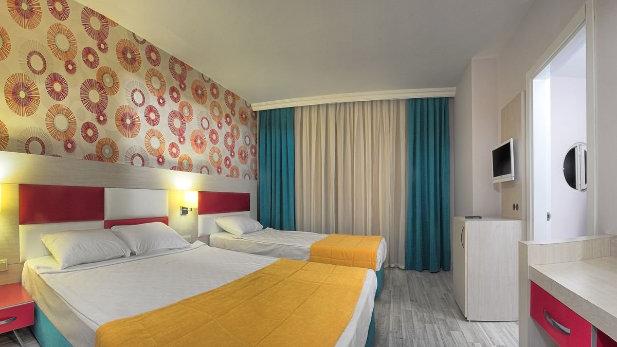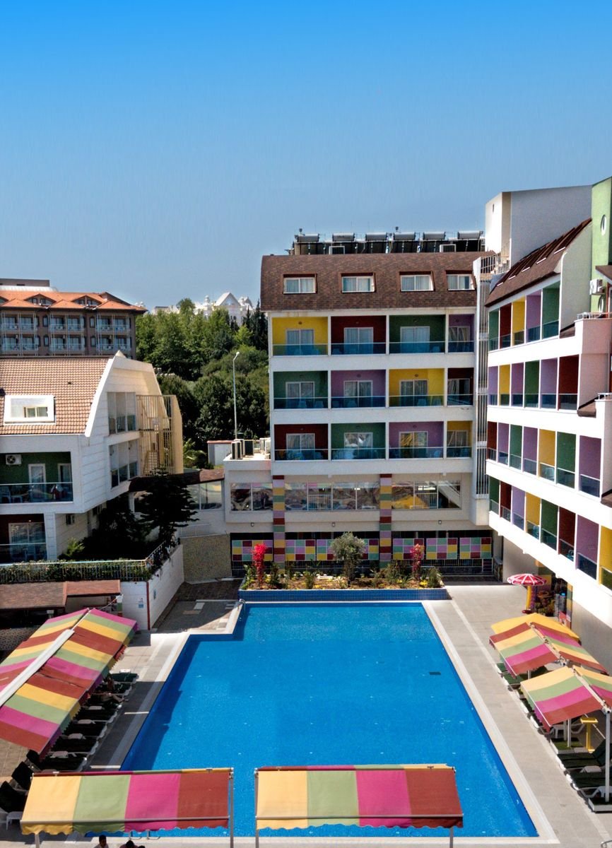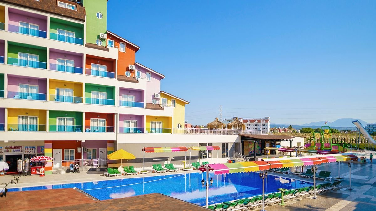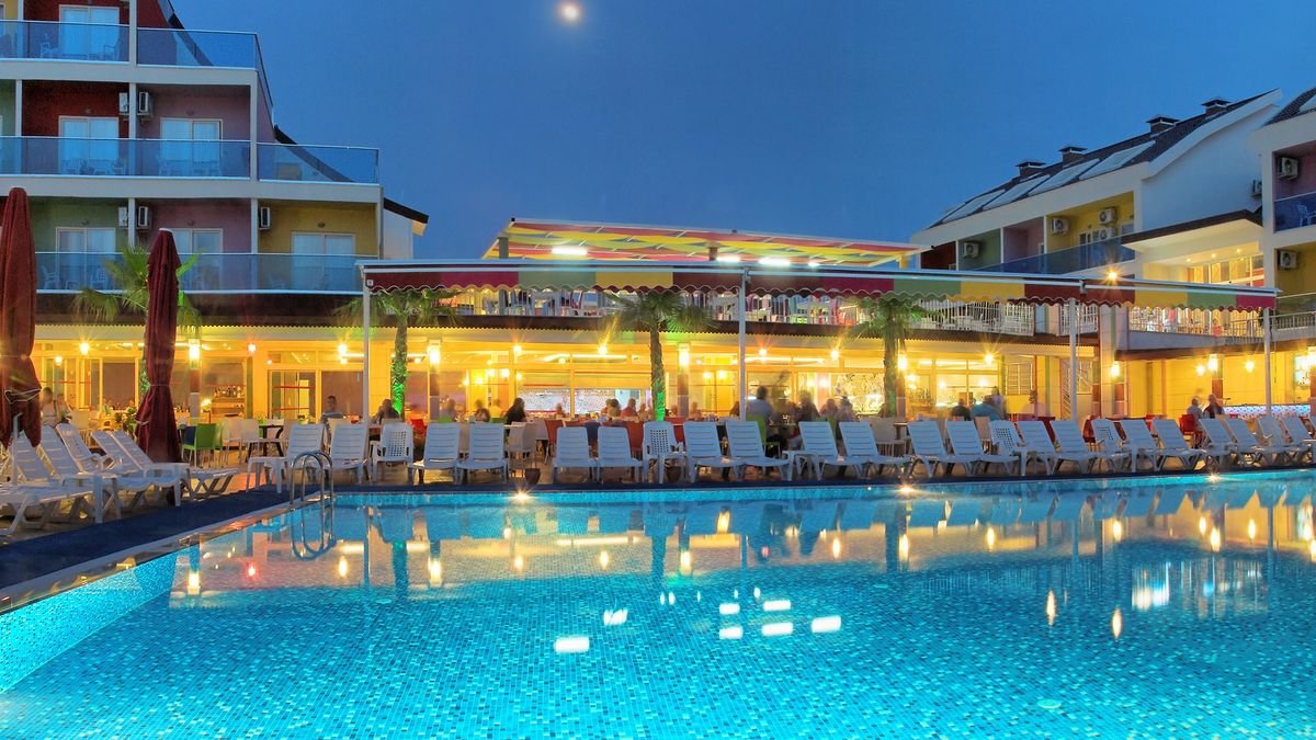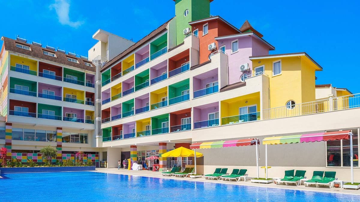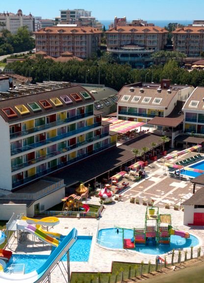Kolorowy, typowo wakacyjny hotel, szczególnie popularny wśród rodzin z dziećmi. Na Gości czekają funkcjonalnie i ciekawie urządzone pokoje oraz wiele atrakcji: basen, aquapark czy animacje. Na relaks na leżaku zaprasza hotelowa, piaszczysta plaża, do której można dojechać bezpłatnym hotelowym busem. Warto również wybrać się na wycieczkę do antycznego miasta Side, gdzie znajduje się słynna świątynia Apollina. Dobry wybór na oderwanie się od codziennej rutyny!