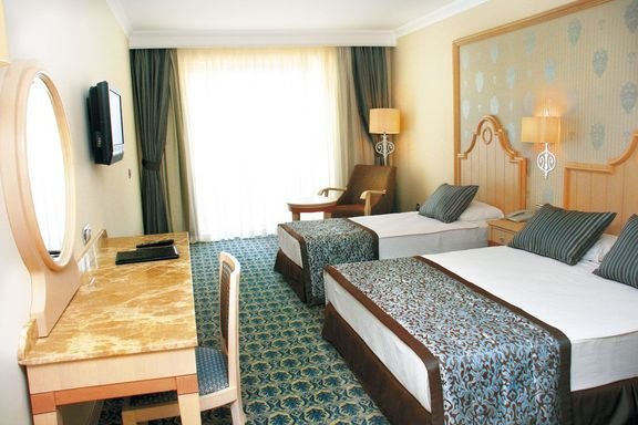 pięciogwiazdkowy, luksusowy, zbudowany w 2008 r., łącznie 811 pokoi różnego typu, budynek główny: 243 pokoje, pięć pięter, pięć wind i 19 budynków typu bungalow: 568 pokoi, jedno piętro, przestronne i eleganckie lobby, całodobowa recepcja, restauracja główna - dania w formie bufetu, kuchnia międzynarodowa, 10 restauracji à la carte, czynne: 19.00-21.00, wymagana rezerwacja: Mediterranean Bistro - kuchnia śródziemnomorska, Miyako - sushi, Volga - rosyjska, Azteka - meksykańska, Santa Lucia - włoska, Moulin Rouge - francuska, Ganesha - indyjska, Sini - turecka, Sunset - rybna, Mongolia Barbeque - mongolska; w restauracjach dostępne foteliki i menu dla dzieci, dania wegetariańskie; bar na plaży, bar przy recepcji, bary: Upper w lobby, Shelale, bar w lobby, Saigon, Elephant przy basenie, Zindan Café; kantor, jubiler, sklep z galanterią skórzaną, pamiątki, sklep z dywanami, kwiaciarnia, supermarket; centrum konferencyjne dla 950 osób, ogród, bezpłatny internet bezprzewodowy w budynku głównym; za opłatą: kawiarenka internetowa, room-service, fryzjer, fotograf, opiekunka dla dziecka, wypożyczalnia samochodów; pokoje dla niepełnosprawnych; akceptowane karty kredytowe: Visa, MasterCard.