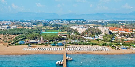 Wakacyjny raj dla dorosłych i dla dzieci: rewelacyjna piaszczysta plaża bezpośrednio przy hotelu, fantastyczne baseny, aquapark i nawet lunapark! Na złotej plaży jest duży pomost do opalania z klubem plażowym i bar ultra all inclusive. Hotel zajmuje powierzchnię aż 130 000 m², jest otoczony pachnącym lasem piniowym, w dużym ogrodzie znajduje się budynek główny i kameralne wille „lake house”. Na miejscu jest kilkanaście barów i restauracji serwujących wyszukane i różnorodne dania zarówno kuchni lokalnej, jak i międzynarodowej. Bardzo bogata oferta ultra all inclusive 24 godziny na dobę! Hotel jest wyróżniony wieloma certyfikatami za znakomitą jakość usług.