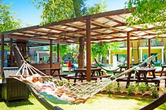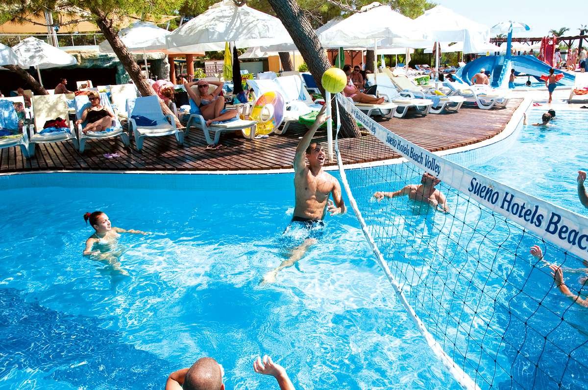5 basenów, słodka woda, łącznie ok. 2000 m², gł. 1,4 m, basen dla dzieci, słodka woda, ok. 100 m², gł. 0,4 m, 3 zjeżdżalnie, aquapark: basen, słodka woda, ok. 500 m², gł. 1,4 m, 7 zjeżdżalni (czymme 10.00-12.00, 13.30-17.30) basen przy lake house, ok. 2800 m², przy basenach bezpłatne parasole, leżaki, materace i ręczniki; kryty basen ze zintegrowanym brodzikiem dla dzieci, słodka woda, łącznie ok. 255 m²; 4 korty tenisowe (bezpłatnie: 8.00-18.00, wymagana wcześniejsza rezerwacja) z wypożyczalnią sprzętu, tenis stołowy, rzutki, minigolf, boule, łucznictwo, centrum fitness, aerobik, pilates, stretching, step, aqua aerobik, aqua spinning, piłka wodna, koszykówka, piłka nożna, minipiłka nożna, siatkówka plażowa, jazda na rowerze i nordic walking z animatorem (codziennie oprócz niedziel); pokój i plac zabaw dla dzieci, miniklub (4-12 lat), teenage club (13-16 lat, w sezonie), dyskoteka, amfiteatr, kino, dziennie i wieczorne animacje dla dorosłych i dzieci; za opłatą: klub planet na plaży, kręgielnia, bilard, playstation, oświetlenie kortu tenisowego i boiska do piłki nożnej; Lunapark (za opłatą; ok. 1-5 EUR/os. w zależności od atrakcji; czynne od 20.00): diabelski młyn, karuzela, minipociąg, samochodziki, rodeo i inne; centrum wellness: sauna, łaźnia turecka, łaźnia parowa, solarium, zabiegi pielęgnacyjne, masaże; sporty wodne na plaży.