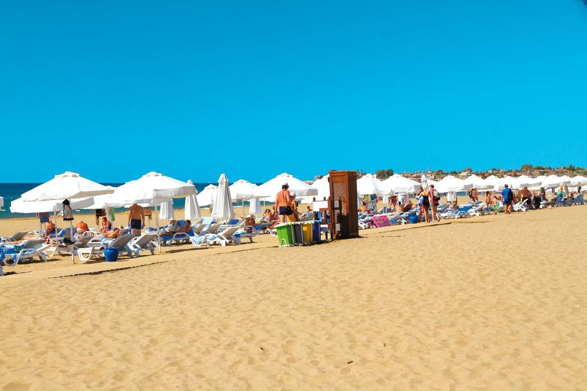 hotelowa, piaszczysta, długa i szeroka, łagodne zejście do morza, wyróżniona certyfikatem Błękitna Flaga, bezpośrednio przy hotelu, bezpłatne parasole, leżaki, materace i ręczniki; bar hotelowy objęty ultra all inclusive – napoje chłodzące, przekąski.
