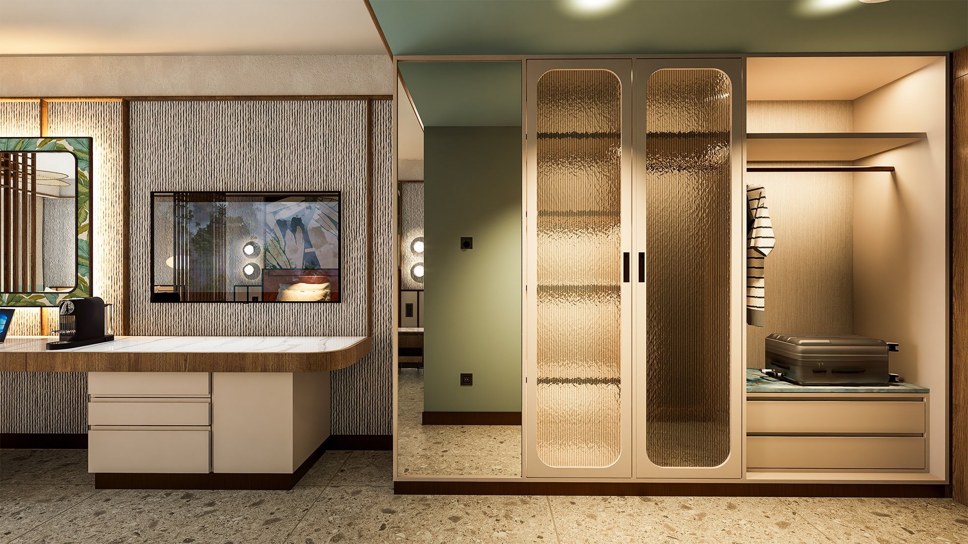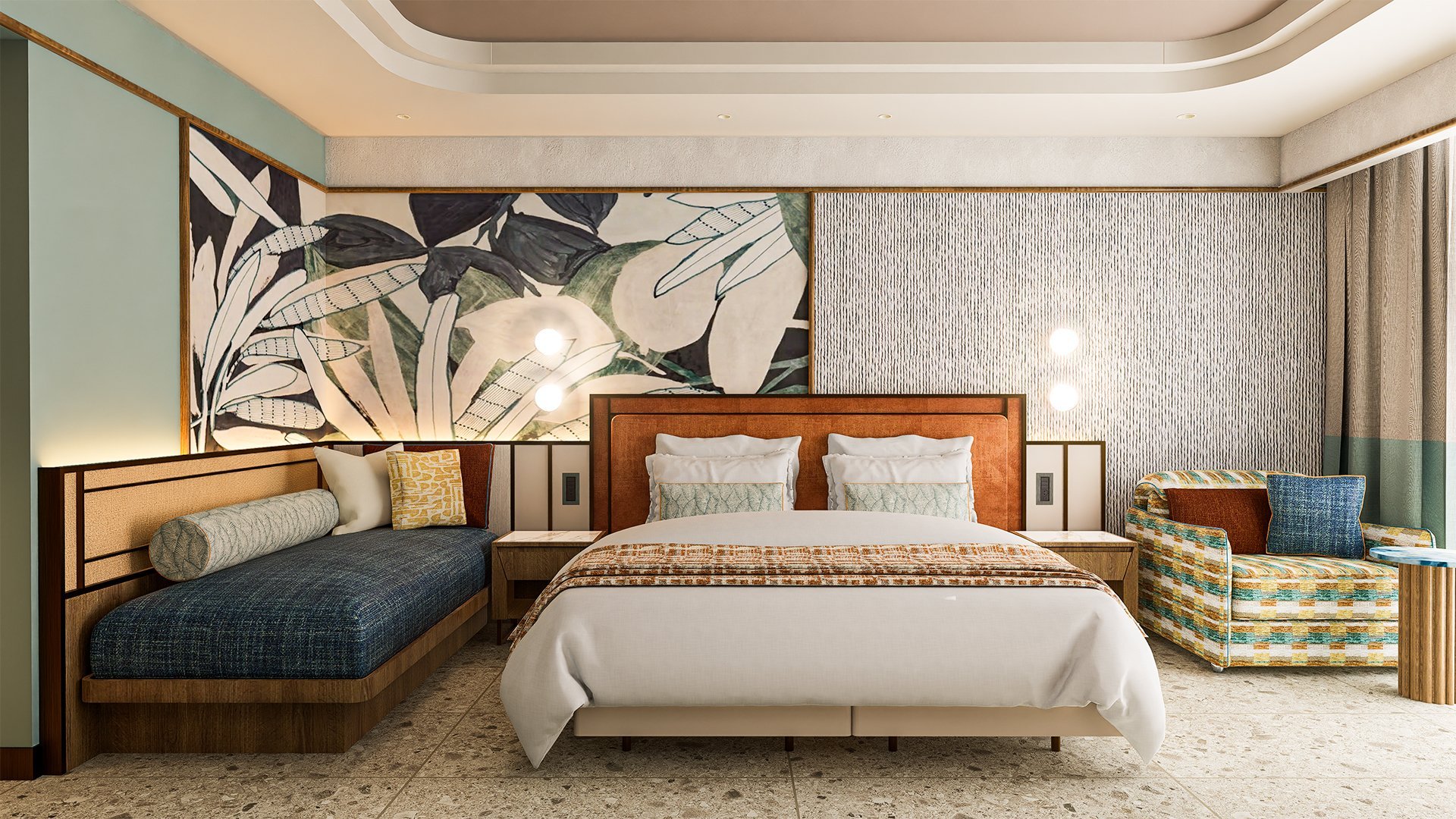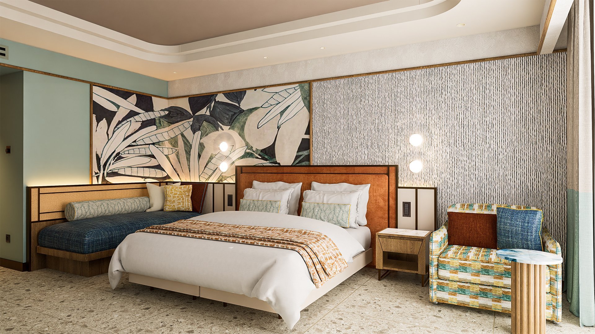 Stylowy, pachnący nowością, zachwyca połączeniem elegancji, komfortu i swobodnej wakacyjnej atmosfery. Każdy zakątek hotelu – od przestronnych, nowocześnie urządzonych pokoi, po luksusowe spa, został zaprojektowany tak, by Goście czuli się tu wyjątkowo. Restauracje rozpieszczają podniebienia różnorodnym menu, serwując zarówno lekkie przekąski, jak i wykwintne dania, a ulubionym miejscem do relaksu są ładnie zaaranżowane baseny otoczone ogrodem i leżakami. Miłośnicy plażowania mogą odwiedzić pobliską hotelową plażę, by poopalać się i popływać w morzu, na najmłodszych z kolei czekają zajęcia z animatorami, zabawa w mini i teen clubie i coś, co spodoba się im najbardziej, czyli basen z 4 zjeżdżalniami. Prezentowany materiał graficzny przedstawia wizualizację obiektu.