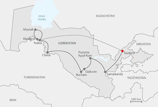 Legendarne miasta Jedwabnego Szlaku w podróżniczej trasie po Uzbekistanie, wspaniała wędrówka po kraju, gdzie wielka przeszłość spotyka się z postkomunistyczną rzeczywistością. To właśnie tu w połowie drogi między Europą i Chinami spotykały się karawany wyładowane towarami, zmierzające z Dalekiego Wschodu do Europy i z Europy do Chin. Na Jedwabnym Szlaku miały miejsce najważniejsze wydarzenia w historii Azji Środkowej. W Uzbekistanie można odnaleźć niezliczoną ilość zabytków sprzed wieków, czas jakby stanął w miejscu, czuje się tu klimat sprzed wieków. Do dzisiaj handel toczy się na wielkich bazarach, gdzie można kupić wszystkie potrzebne przedmioty i produkty. Tu przenikają się różnorodne zapachy herbat, przypraw i ziół, słychać języki z całego świata. Niezapomnianą przygodą będzie wizyta u plemion koczowniczych, żyjących na pustyniach i stepach. Warto poznać ich zwyczaje, a wieczorem przy ognisku i muzyce skosztować typowych potraw. Dodatkową atrakcją jest nocleg w jurcie – namiocie używanym przez tubylców podczas wędrówek. Choć Uzbekistan jest krajem muzułmańskim, na każdym kroku dostępne jest tu wino wyrabiane przez mieszkańców, dlatego nie zabraknie też okazji do degustacji.