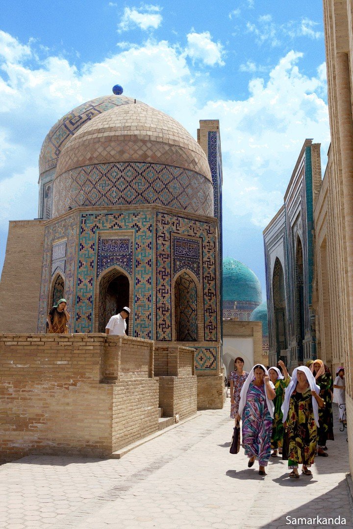 Śniadanie. Wykwaterowanie. Przejazd pociągiem (ok. 2 godz.) do SAMARKANDY – Klejnotu Wschodu, miasta wpisanego na listę UNESCO, którym zachwycał się sam Marco Polo. Samarkanda leży na Jedwabnym Szlaku i odgrywała bardzo ważną rolę w minionych wiekach jako ośrodek przemysłowy i naukowy. W XIV w. była jedną z największych stolic świata. Dzisiaj jest chętniej odwiedzana przez turystów z całego świata, podziwiających najstarsze zabytki Azji Środkowej. Zwiedzanie Registanu, monumentalnego placu, wyłożonego palonymi cegłami i brukiem. Jego nazwa oznacza „piaszczyste miejsce”. Kiedyś było to targowisko na skrzyżowaniu kilku ulic, które przekształciło się później w centrum życia publicznego. Plac jest uważany za najwspanialszy zespół architektoniczny Azji Środkowej. Otaczają go turkusowe budynki pokryte mozaikami. Znajdują się tu 3 medresy – teologiczne szkoły muzułmańskie, które w średniowieczu były jednym z głównych centrów naukowych Wschodu. Przejście do Gur-Emir, mauzoleum, gdzie pochowany jest wielki budowniczy miasta Amir Timur i jego synowie. Mauzoleum z 34-metrową kopułą jest repliką kopuły meczetu Umajjadów w Damaszku. Kopuła pokryta jest dachówkami w kolorach błękitu i turkusu, dominujących w zabudowie starego miasta. Następnie wizyta na Siyab, największym bazarze w mieście, nekropolia Shakhi Zinda, unikalny zespół starożytnych grobowców z XIV-XV w., meczet Bibi Khanum. W trakcie zwiedzania obiad. Przejazd do hotelu, zakwaterowanie, nocleg.