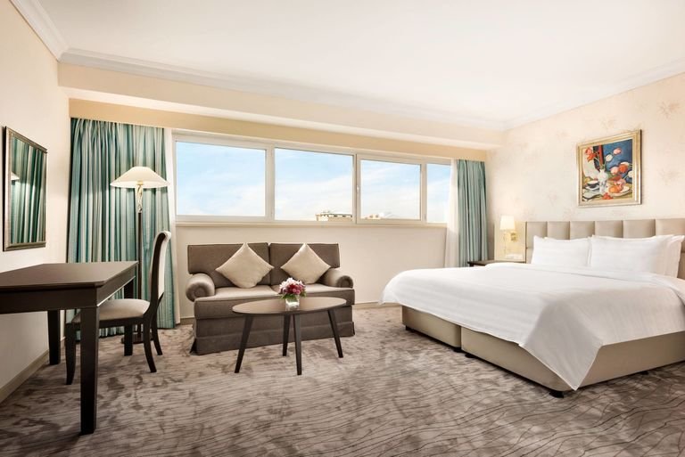 Taszkent to miasto pełne kontrastów, a Ty znajdziesz tu swoje miejsce łączące nowoczesność z lokalną atmosferą. Barwne bazary, ciekawe muzea i zabytki – to wszystko odkryjesz w wolnych chwilach. Po dniu zwiedzania odpoczniesz przy jednym z 3 basenów lub potrenujesz na siłowni. Stylowe i przestronne pokoje zapewnią Ci komfort, a dzięki przystankowi przy hotelu łatwo dotrzesz do głównych atrakcji miasta.