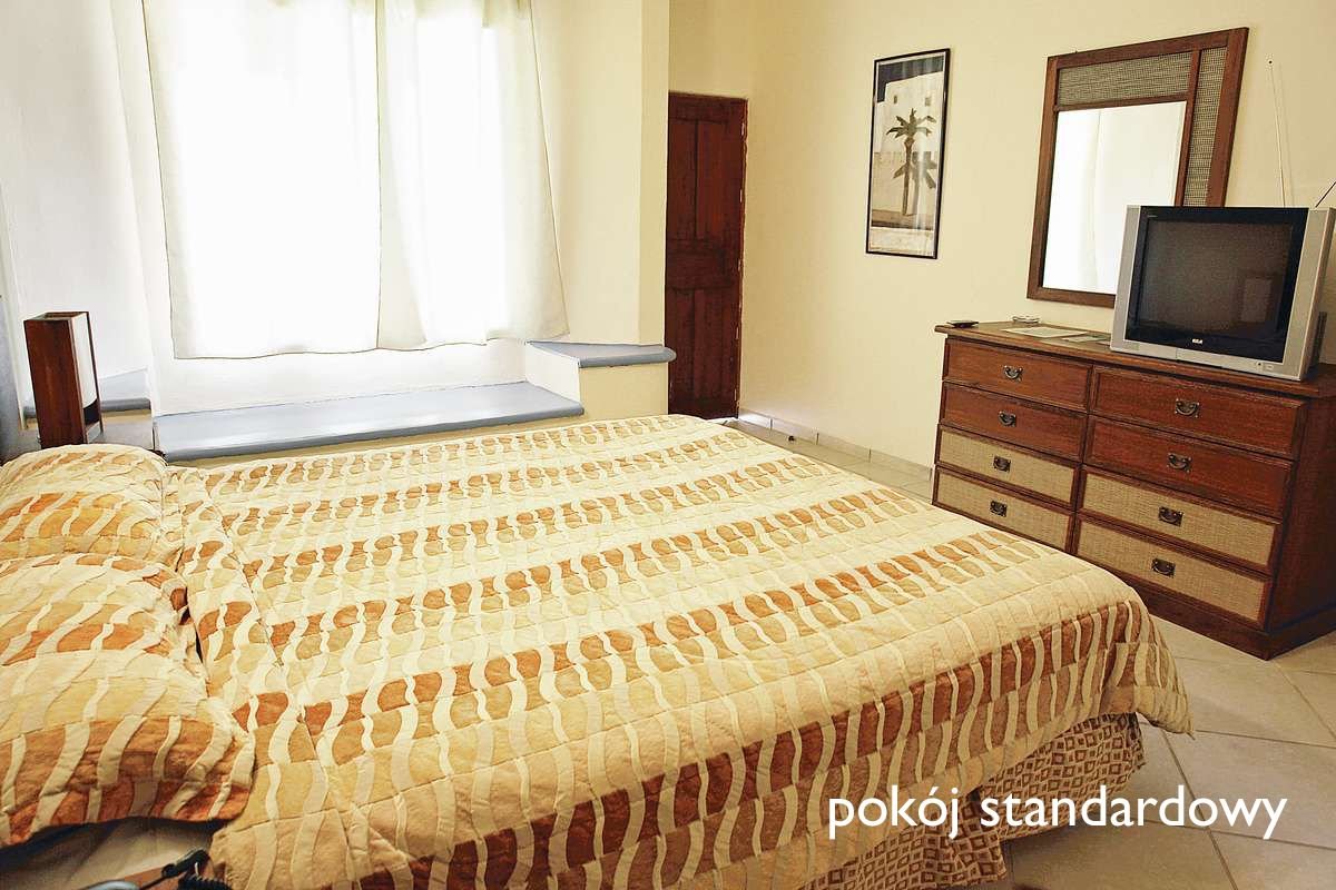 standardowy: 2-os. (możliwość 1 dostawki), ok. 35 m², zadbany, indywidualnie sterowana klimatyzacja, łazienka (prysznic, wc), telewizor, telefon, minilodówka, sejf; bezpłatne łóżeczko dla dziecka do 2 lat na zamówienie przed przyjazdem; taras (stolik i krzesełka); superior: 2-os., ok. 35 m², nowocześnie urządzony, indywidualnie sterowana klimatyzacja, łazienka (prysznic, wc; suszarka), telewizor, telefon, minilodówka; wyposażenie jak w pokoju standardowym; pokój superior za dopłatą.