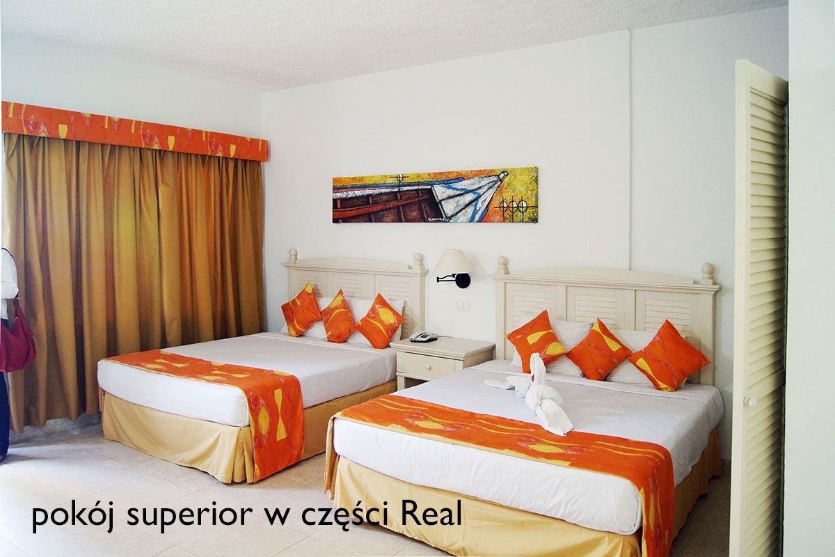 superior (DHS): w części Tropical, 2-os. (możliwość 1 dostawki), ok. 25 m², zadbany, indywidualnie sterowana klimatyzacja, łazienka (prysznic, wc; suszarka), telewizja kablowa, telefon, lodówka, sejf; bezpłatne łóżeczko dla dziecka do 2 lat na zamówienie przed przyjazdem; balkon (stolik i krzesełka) lub duże okno, widok na ogród, basen lub częściowy na morze; superior (DLX): w części Cascada 2-os. (możliwość 1 dostawki), ok. 30 m², przestronny, ładnie urządzony, indywidualnie sterowana klimatyzacja, osuszacz, łazienka (prysznic, wc; suszarka), telewizja kablowa, telefon, lodówka, sejf, niektóre pokoje z aneksem kuchennym z podstawowym wyposażeniem; bezpłatne łóżeczko dla dziecka do 2 lat na zamówienie przed przyjazdem; pokoje na parterze z tarasem (stolik i krzesełka), na piętrze bez balkonów, widok na ogród i basen; junior suite (JS): w części Tropical lub Real, 3-os. (możliwość 1 dostawki), ok. 40 m²; wyposażenie jak w pokoju superior w części Real, dodatkowo jacuzzi; pokój junior suite na zamówienie, za dopłatą; superior (DXS): w cześci Real, 2-os. (możliwość 1 dostawki), ok. 30 m², przestronny, nowocześnie urządzony, indywidualnie sterowana klimatyzacja, osuszacz, łazienka (prysznic, wc; suszarka); telewizja kablowa, telefon, lodówka, sejf; bezpłatne łóżeczko dla dziecka do 2 lat na zamówienie przed przyjazdem; balkon lub taras (stolik i krzesłełka), widok na ogród, basen lub częsciowo na morze; pokój superior w części Cascada i Real oraz pokój suite na zamówienie za dopłatą.