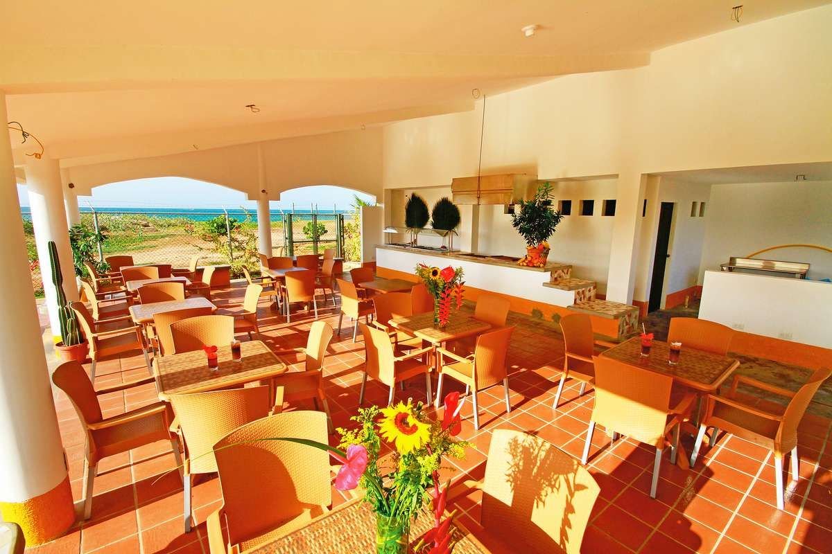 śniadanie (7.00-10.00), obiad (12.30-14.00), kolacja (18.30-21.00) w formie bufetu w restauracji głównej; późne śniadanie (10.00-11.00) i podwieczorek (16.00-17.00) w restauracji przy plaży; przekąski; napoje bezalkoholowe i lokalne napoje alkoholowe w barach (10.00-22.00); wymagane noszenie opasek all inclusive.