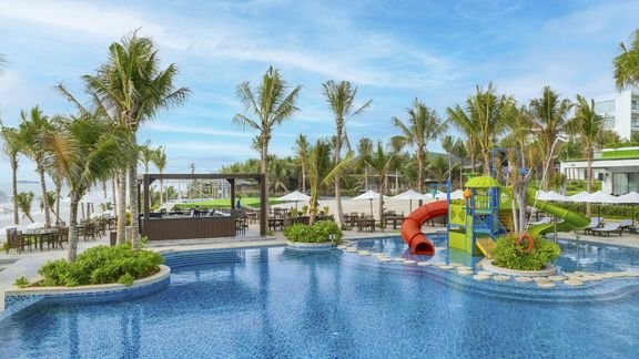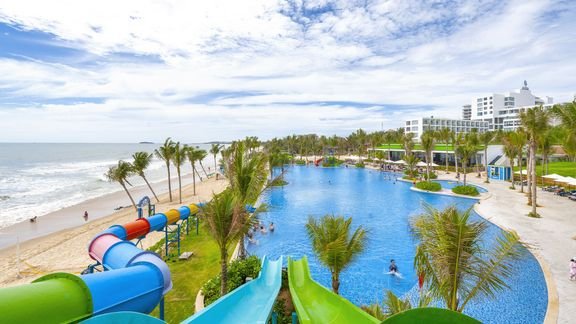 Widoki jak marzenie! Położony na wybrzeżu, przy pięknej plaży z palmami zaprasza na rajski urlop w Wietnamie. Otoczony zielonymi wzgórzami, idealnie wtapia się w otaczający go krajobraz. Doskonale będą się tu bawić rodziny z dziećmi, na które czeka mnóstwo atrakcji – basen infinity z kolorowymi zjeżdżalniami, miniklub, plac zabaw, animacje i bogata oferta sportowa, w tym sporty wodne. Hotel słynie z doskonałej obsługi i świetnej, lokalnej kuchni, na miejscu są też 2 bary, w których schłodzisz się kolorowym koktajlem. Lubisz zwiedzać? Tutaj będziesz w swoim żywiole! Podziwiaj malowniczą okolicę i kolorowe okrągłe łódki kołyszące się na falach oraz zaplanuj dzień pełen wrażeń i zachwyć się słynnymi białym i czerwonym wydmami, a nawet wypożycz deskę i spróbuj sandbordingu!